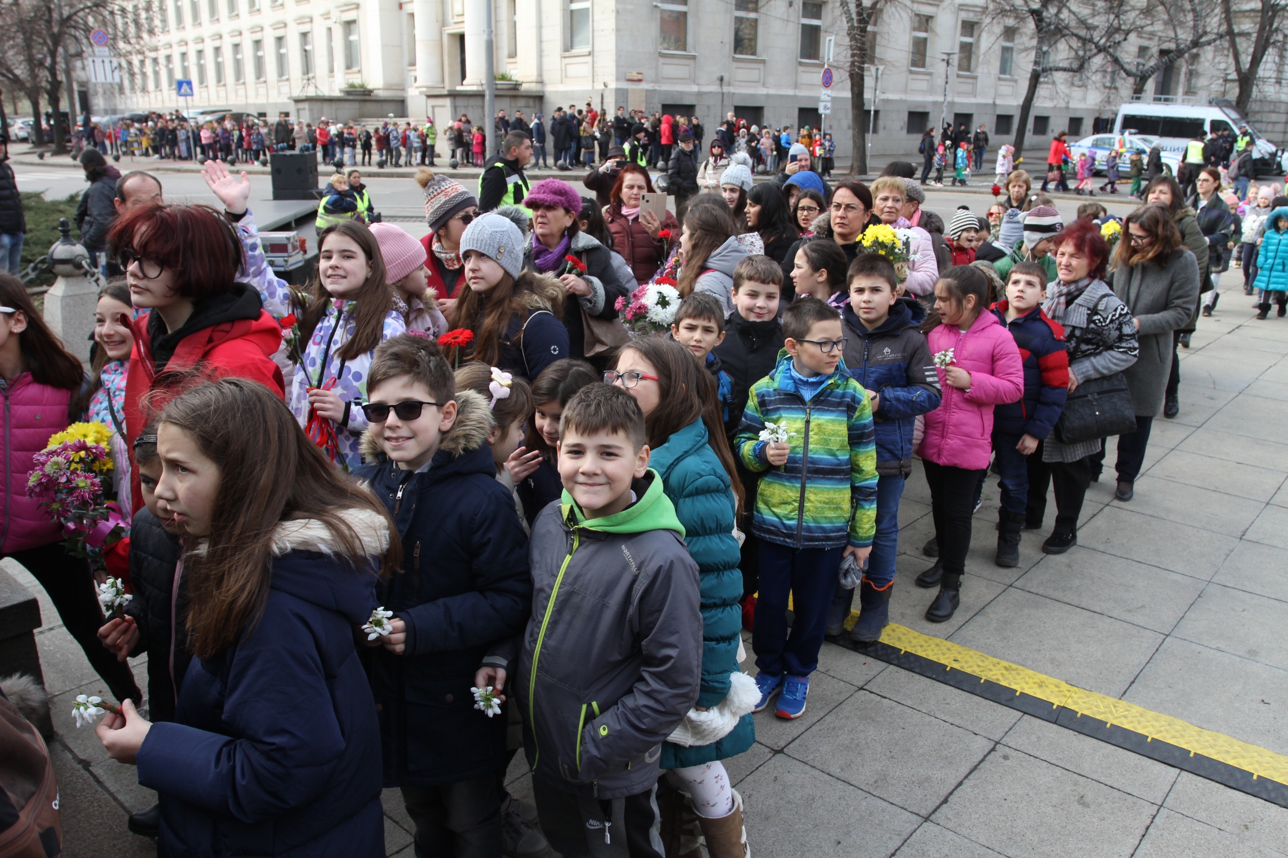 От рано сутринта паметникът на Васил Левски в центъра на София бе отрупан с цветя и венци. Опашката от желаещи да се преклонят пред подвига на Апостола на свободата, стигаше до сградата на Художествената галерия. Най-нетърпеливи бяха децата от столичните детски градини и училища.