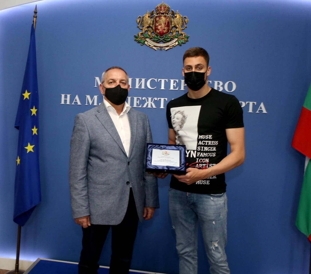 Шампионът Лудогорец представи новите си попълнения Серджио Падт и Клод Гонсалвеш. Снимка - "Лудогорец". На втората снимка - министърът на спорта Андрей Кузманов връчи почетен плакет на плувеца Йосиф Миладинов, който спечели исторически първи евромедал за мъжете на голям басейн. Снимка - ММС.