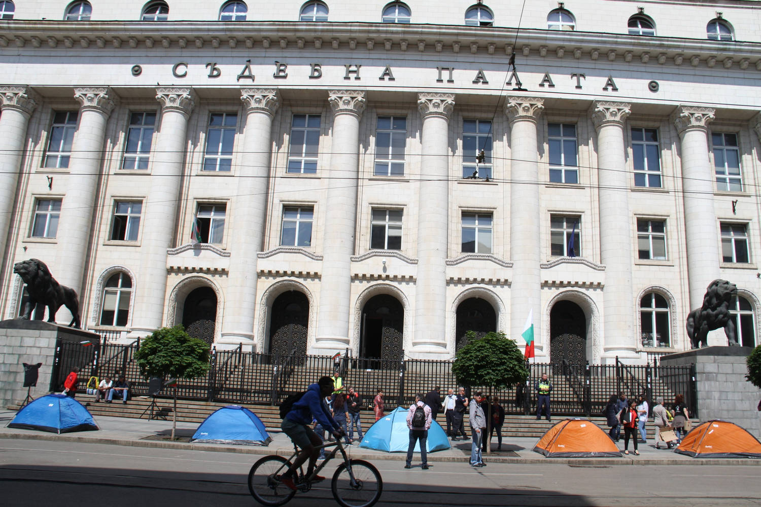 Протестиращи опънаха палатки пред Съдебната палата в София. Те настояват за оставката на главния прокурор Иван Гешев и се заканиха да не го допускат до работното му място. Снимки Михаела Катеринска