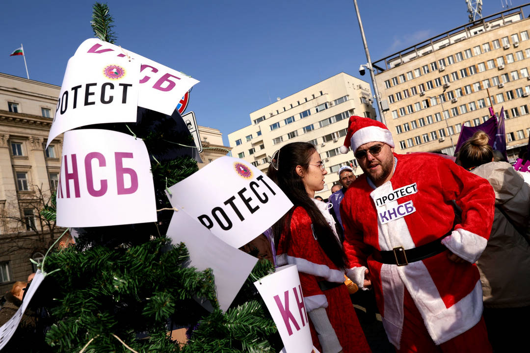 С призив „НЕ на разединението на работещите! ДА на по-високите доходи!“ членове на КНСБ се събраха на протест пред служебния вход на НС с искания за повишаване на заплатите на държавните служители с 10% и законодателни промени за насърчаване на КТД. Недоволните донесоха импровизирана коледна елха и коледни подаръци с искания