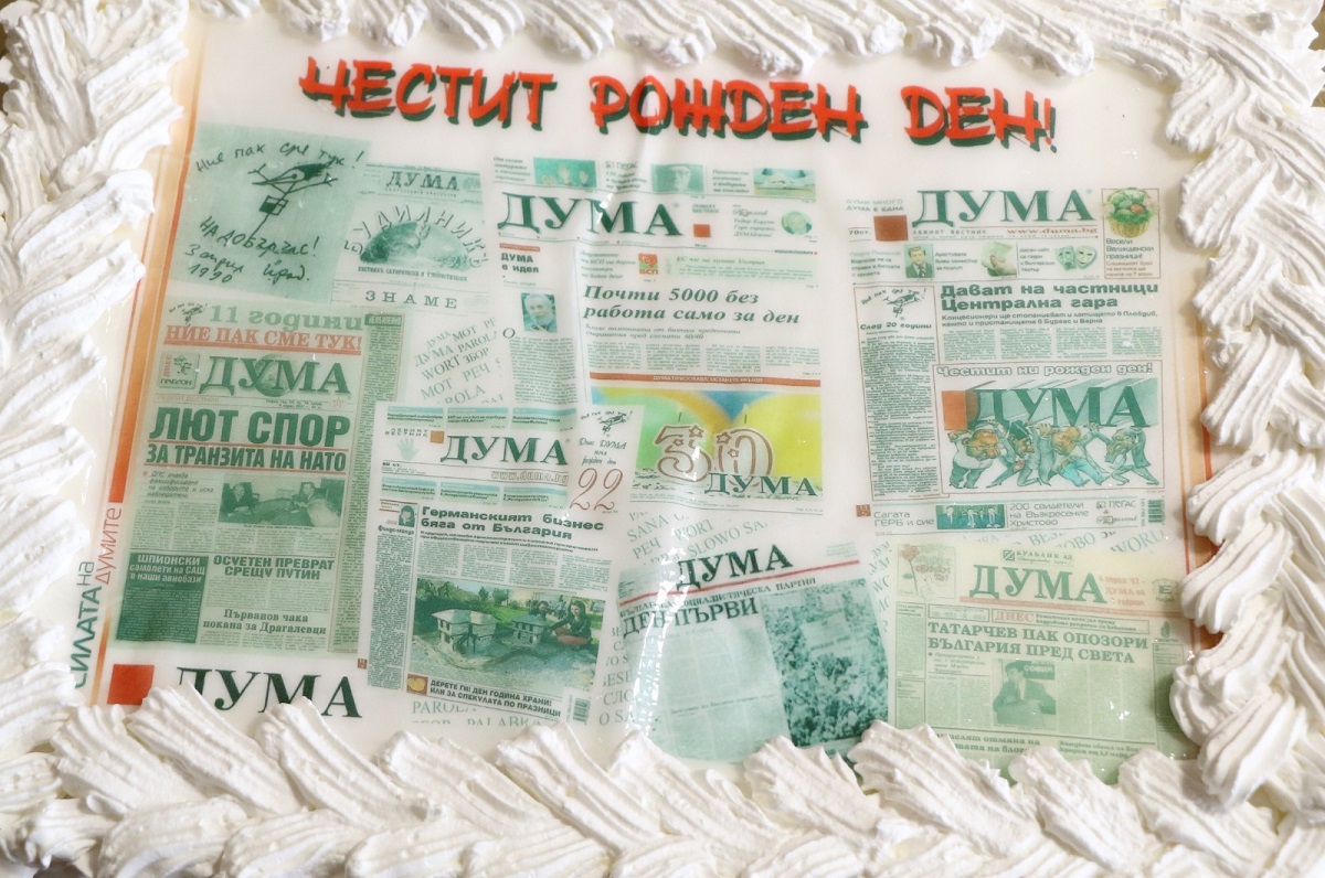 Вече 32 години ДУМА остава вярна на призванието си да бъде територия на свободното слово, на истината и на талантливата журналистика. Честит празник на всички редактори, журналисти и верни читатели на вестника!