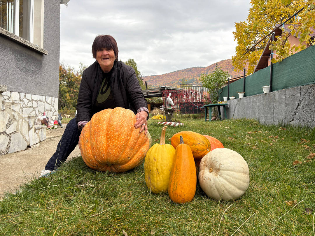 Над 50-килограмови тикви отгледа тази година 75-годишната Христина Вукова от Самоков, която има дългогодишен опит в градинарството. Жената разказа, че всяка година засажда различни сортове плодове и зеленчуци, но през тази есен са се родили тикви с необичаен размер. Има малки и по-големи с различни форми, но най-впечатляващи, по думите й, са тези, които тежат над 40 и над 50 килограма