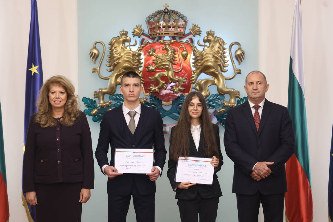 Двама младежи бяха „президент“ и „вицепрезидент“ за един ден в рамките на инициативата „Мениджър за един ден“, на която администрацията на президента е домакин. Президентът Румен Радев и вицепрезидентът Илияна Йотова връчиха сертификати на двамата ученици за участие в инициативата „Мениджър за един ден“