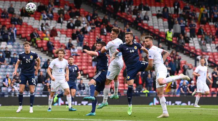 Шотландия загуби от Чехия с 0:2 в мач от група D. Пред 12 000 зрители на „Хемпдън Парк“ в Глазгоу успеха на гостите донесе нападателят на Байер Леверкузен Патрик Шик (42 и 52). В първия случай той засече по отличен начин с глава центриране на Владимир Цуфал от десния фланг и матира вратаря Дейвид Маршал. След почивката той шутира с левия крак от 45 м и прехвърли излезлия напред Маршал.