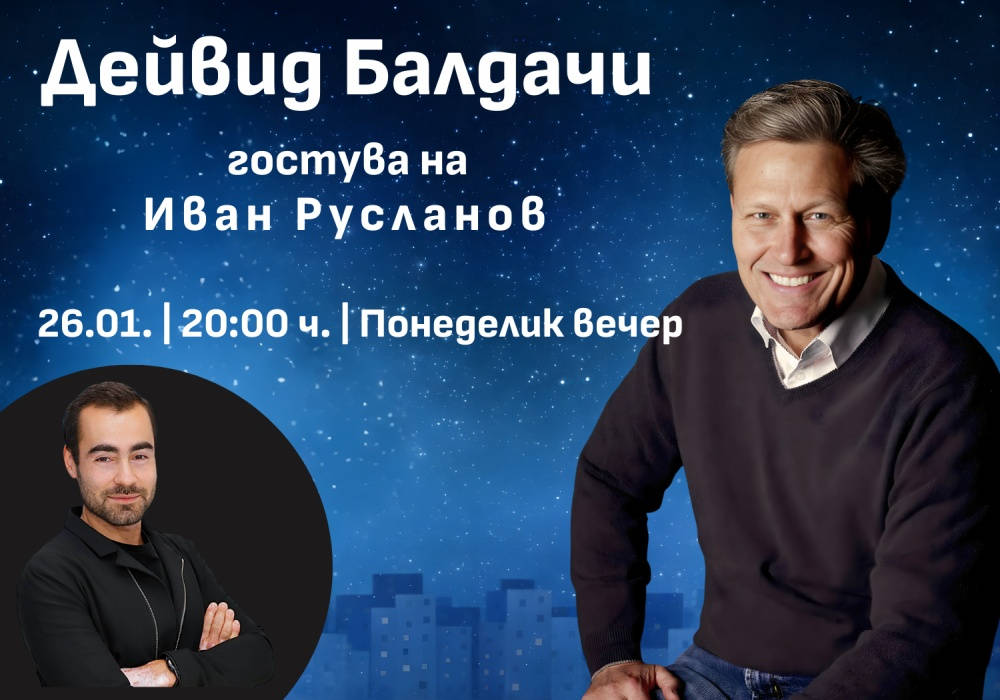 Популярният американски писател Дейвид Балдачи ще гостува на предаването "Понеделник вечер" в БНР на 26 януари от 20 до 21 ч. по програма "Хоризонт", по специална покана на водещия Иван Русланов. Това е втори техен разговор след проведения в началото на октомври 2023 г. по повод романа на Балдачи "Дълги сенки", научи ДУМА от издателство "Обсидиан". Балдачи ще обсъди последните си два романа. За "В капана на времето", първата му историческа драма, споделя: "Философията ми е проста - четем за историческите събития, за да не повтаряме грешките от миналото. Опасно е да не познаваш историята. "В капана на времето" се развива през Втората световна война. Винаги съм мислел, че събитията тогава показват много ясно основните човешки качества. Имаме битка между откровено добро и откровено зло." А "Процесът", излязъл през лятото на 2025 г., според Балдачи е "може би най-автобиографичната ми книга. Роден съм във време, в което расовата сегрегация още беше законна в щата Вирджиния. Исках да разкажа своята лична история за този период, да представя съдебно дело, което да покаже колко нечестно е било това време за цветнокожите." Той ще разкаже на слушателите за новия си герой Уолтър Наш от предстояща поредица, началото на която ще излезе това лято у нас.