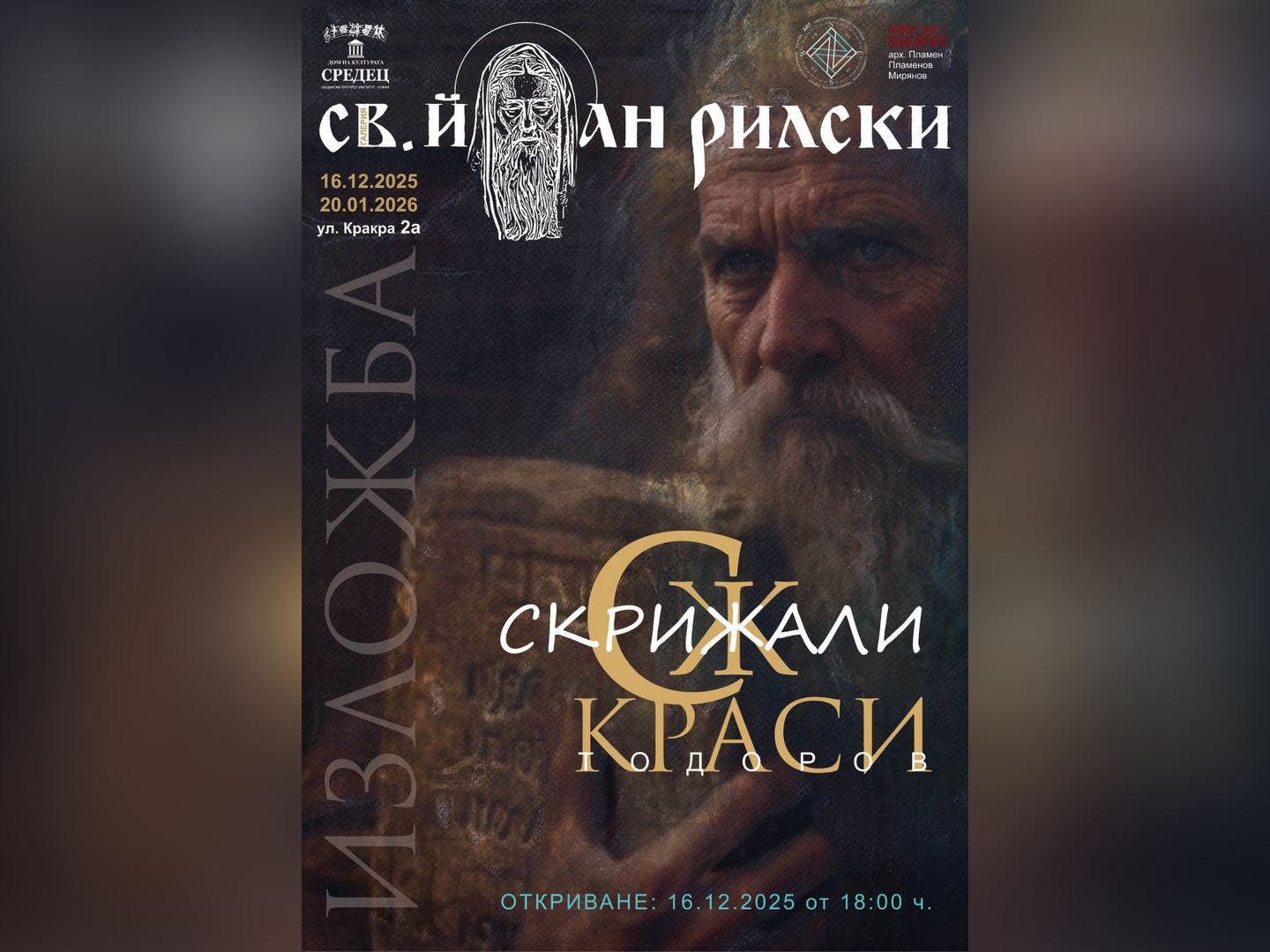 Изложбата "Скрижали" представя най-новите живописни и скулптурни творби на художника Краси Тодоров, създадени след неговото духовно пътуване до Света гора - Атон. Авторът изследва скрижалите като първооснова на човешкото битие и като носител на енергия, закодирана в материята, превръщайки личните си преживявания и видения в силно въздействащи образи и композиции. Изложбата може да се види в галерия "Св. Йоан Рилски" в Дома на културата "Средец" в София до 20 януари 2026 г. Художникът изгражда свят, който е едновременно чуден и реален, в който вярата и изборите на човека се оказват решаващи не само за динамиката на настоящето, но и за наследството, което оставяме. "Чудесата, които се случват в моето съзнание, са тези, които са пратени от Бог. Тайната на сътворението на мисълта, безкрая, в който всичко се изгражда, и времето, в което се твори, са процес на творчество, който доближава до Бог", споделя Краси Тодоров. Представен е и каталогът "Животворение", който обобщава творческия път и философията на автора. В дните на изложбата са предвидени беседи, посветени на съвременното изкуство, които ще разширят темите на изложбата и ще създадат пространство за диалог с публиката.