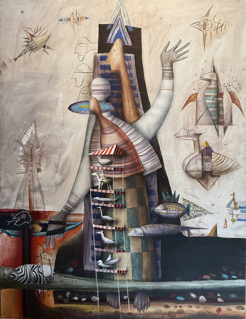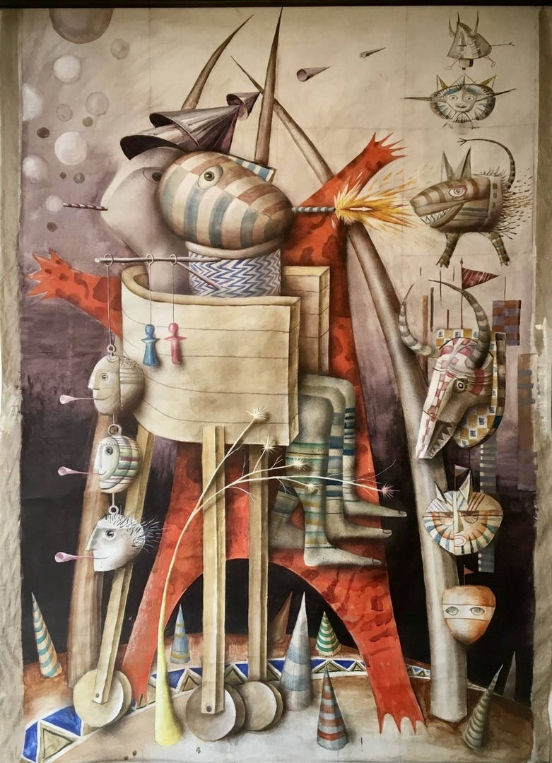 В творбите на Николай Панайотов фигури, животни и предмети съжителстват в съчетания, които изглеждат едновременно абсурдни, но и някак неизбежно свързани