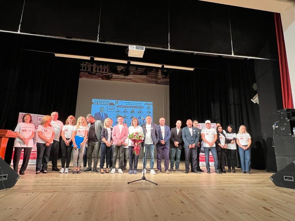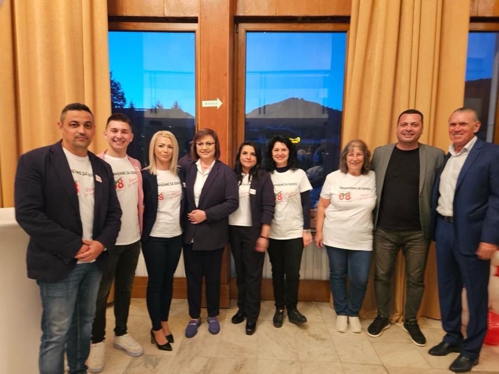 Това заяви лидерът на БСП Корнелия Нинова пред препълнената зала на читалището в Етрополе. С бурни аплодисменти жителите на общината пожелаха успех на изборите на кандидата за кмет Владимир Александров и листата с общински съветници на МК „БСП за България“, които са с №68 в Етрополе.