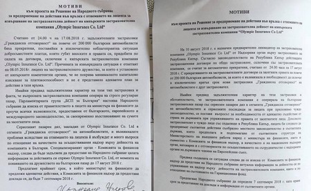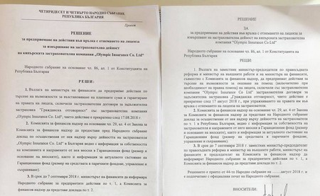 В приетото решение се казва още, че информацията, която Комисията за финансов надзор ще предостави, трябва да съдържа всички нейни действия, предприети от появяването на дружеството на българския пазар до 17 август 2018 г., когато задължителните застраховки „Гражданска отговорност“ на повече от 200 хил. българи бяха прекратени. Докладът трябва да съдържа и информация за собствеността на компанията и направените от нея вноски в Гаранционния фонд, както и информация за актуалното състояние на фонда.