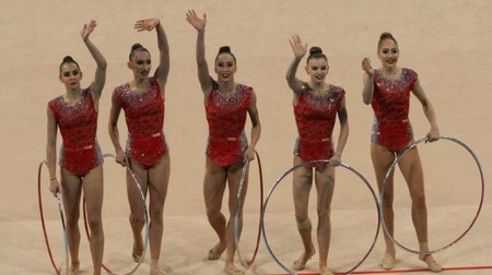 Великолепно изпълнение с 5 обръча окичи българския ансабмъл със златни медали. Момичетата ни грабнаха титлата на обръч на Световното по художествена гимнастика, което приключва днес в София. /Снимка БГНЕС/