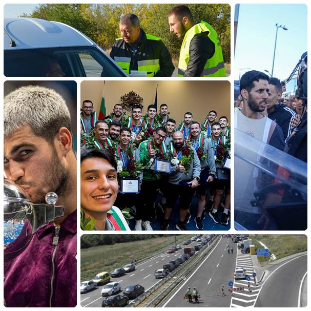 18-годишният разпределител Симеон Николов и останалите герои от националния ни отбор по волейбол си правят снимка тип селфи на ВИП-а на летище "Васил Левски" след пристигането си от Мондиала. Във Филипините "лъвовете" заслужиха сребърни медали, а в София бяха посрещнати като герои