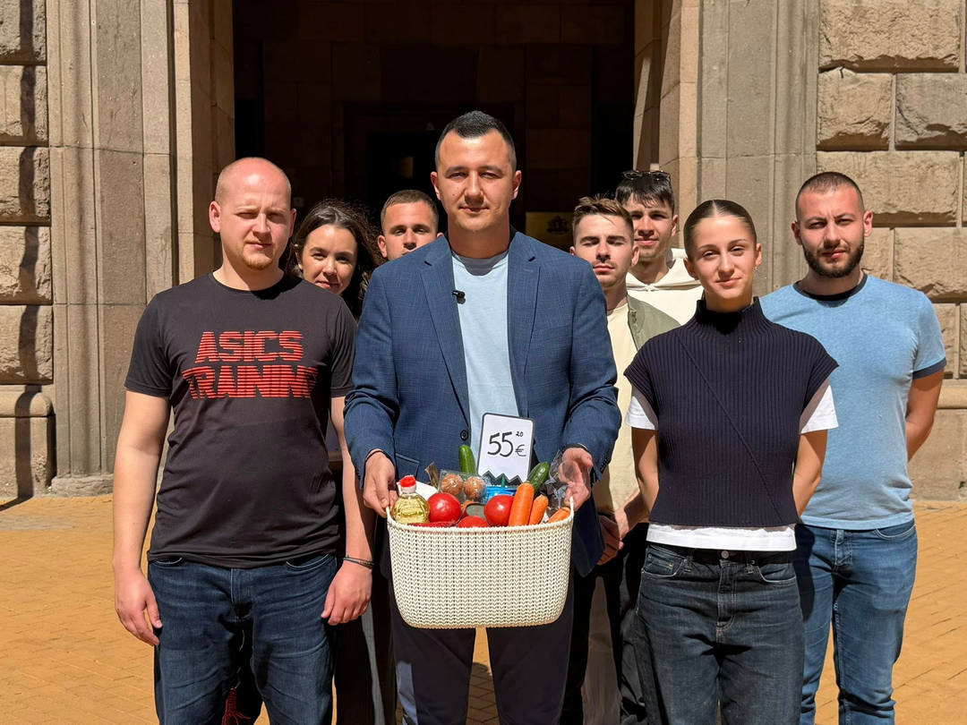 "Кошница на реалността" с най-необходимите хранителни продукти на актуална стойност 55,20 евро занесоха пред Министерския съвет водачът на листата на "БСП-ОБЕДИНЕНА ЛЕВИЦА" в 24 МИР в София Габриел Вълков и младежи от БСП, за да покажат реалната цена на "минимума", който днес много български семейства трудно могат да си позволят