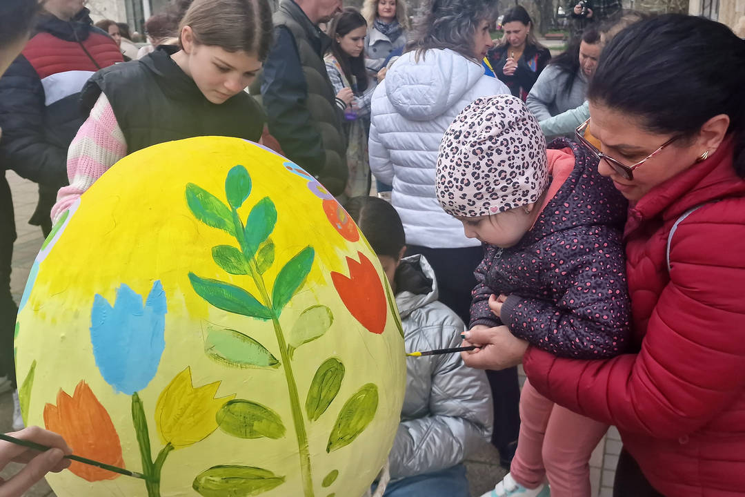 Малки и големи жители на Разград с четка и боички пресъздадоха великденски и пролетни сюжети върху големи яйца по случай Великден