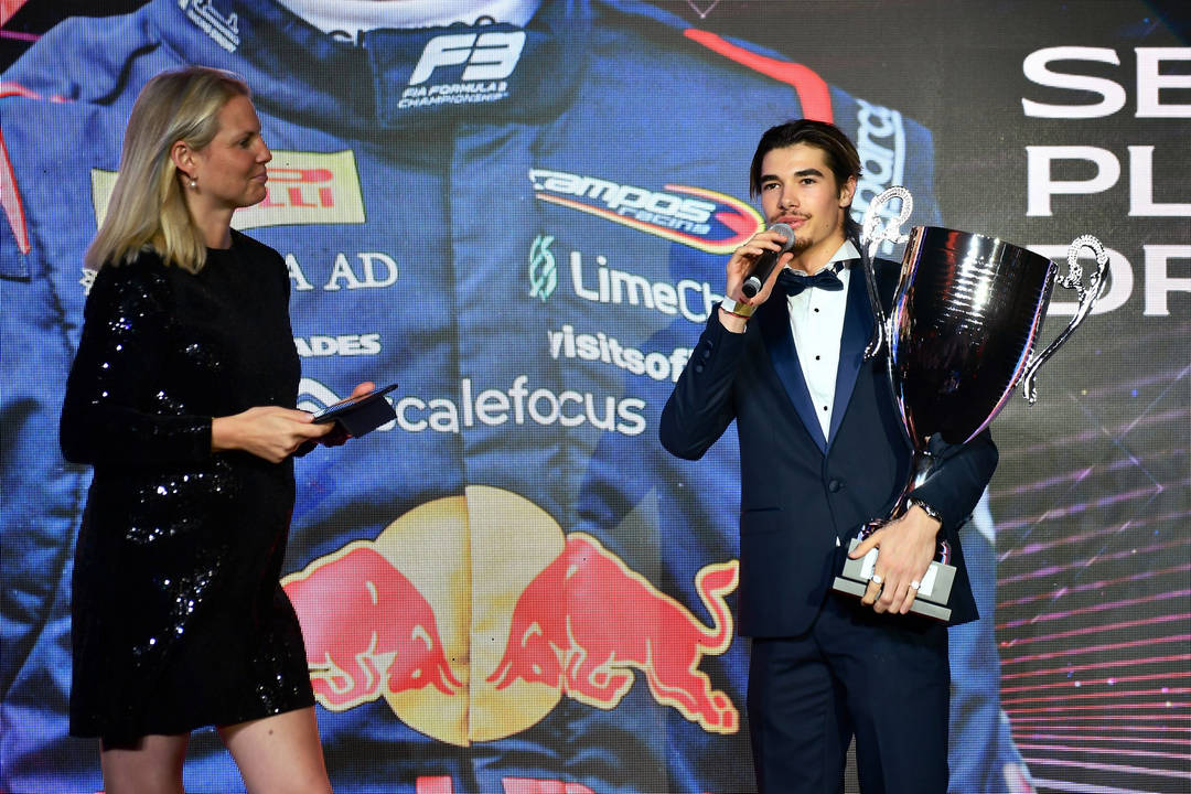 Никола Цолов позира с трофея за второто място във Формула 3 за 2025 г. Българският пилот получи отличието на церемония в Абу Даби. През кампанията Българският лъв беше победен само от Рафаел Камара (Браз). Цолов записва три полпозишъна, две победи и общо шест подиума в рамките на десетте кръга