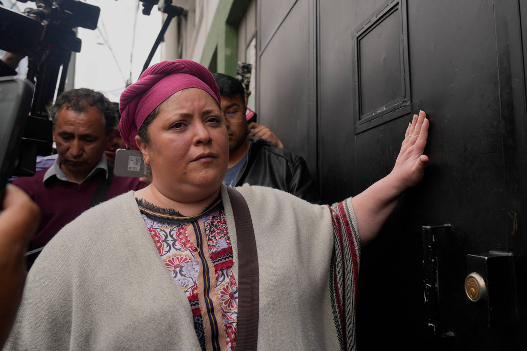 Бившата боливийска министърка Мария Нела Прада от кабинета на левия експрезидент Луис Арсе чука на вратата на полицейския участък, където той е задържан. Новата власт го обвини в корупция