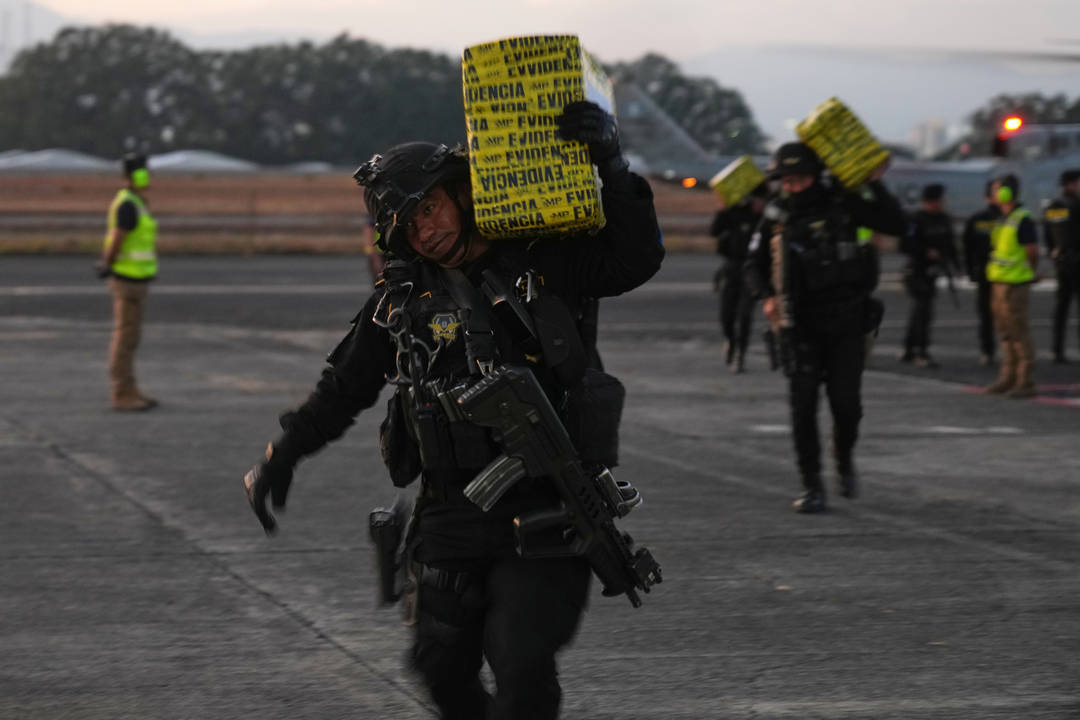 Латинска Америка води война с наркотрафика. На снимката - обучени гватемалски агенти изнасят заловени пратки с дрога от пристанище в страната