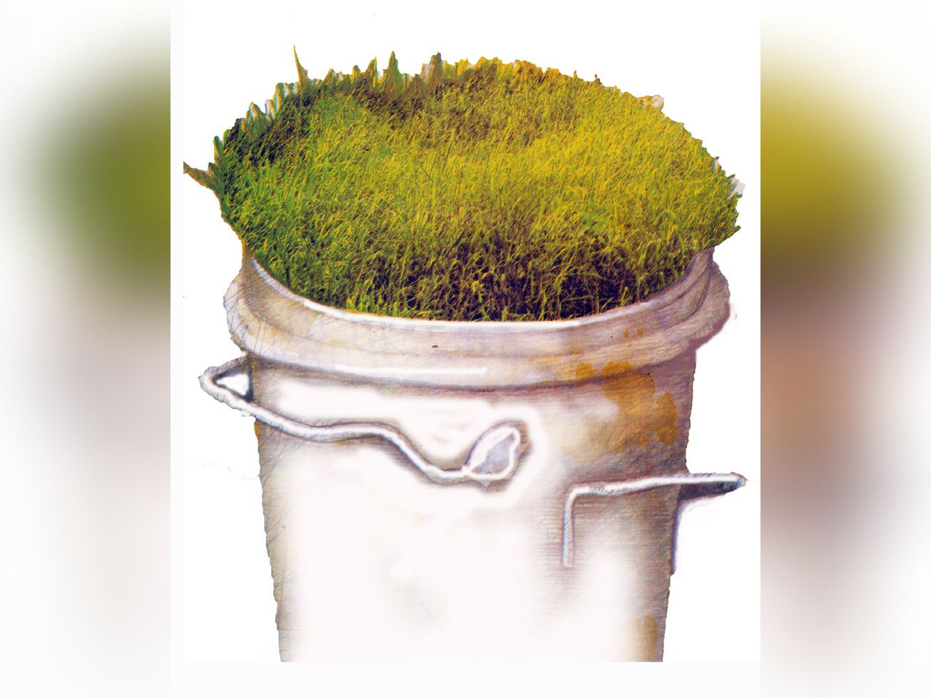 че редом със нея, размахал косачката,