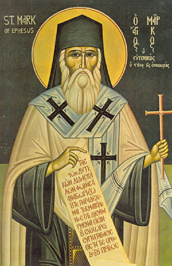 Св. Марк Ефески е велик светител Божи и един от най-големите отци и учители на църквата, наречен от своите съвременици Нови Василий, Нови Богослов и Стълб на Православието. Той е единственият епископ, който не е подписал унията с папа Евгений IV на общия източно-западен събор във Ферара и Флоренция през 1438-1439 г. и така чрез него Бог е спасил нашата свята, апостолска, православна вяра. Благодарение на него православната ни църква е избегнала робството под неправославните латинци.