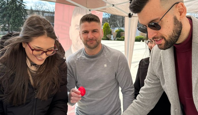 Центърът на Перник почервеня в празничен дух - с великденски яйца и срещи на хората с перничанина, водач на листата на БСП-ОЛ Иво Ангелов