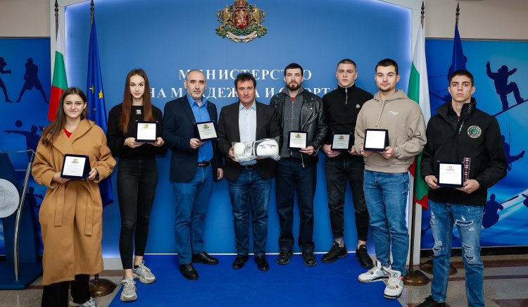 Заместник-министърът на младежта и спорта Димитър Георгиев награди с почетни плакети медалистите от Световното и Европейското първенство по савате.
