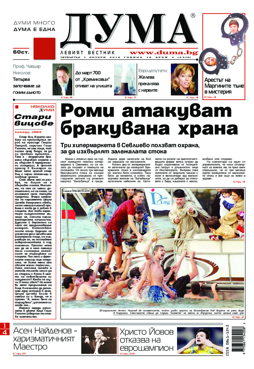 АБОНАМЕНТ за вестник „ДУМА“ за 2026 година. Можете да се абонирате в: „Български пощи“ АД до 15 декември 2025 г., „Доби прес“ ЕООД до 28 декември 2025 г., в редакцията на вестника до 20 декември 2025 г. Каталожен номер 6. Цени: 12 месеца - 149 € / 291,42 лв., 6 месеца - 75 € / 146,69 лв., 3 месеца - 40 € / 78,23 лв., 1 месец - 14 € / 27,38 лв. За повече информация тел. 02 9705 203 и 02 9705 216 отдел „Разпространение” на в-к ДУМА на ул. „Позитано” 20 А. E-mail: abonament@duma.bg АБОНАМЕНТ за вестник „ДУМА“ за 2026 година. Можете да се абонирате в: „Български пощи“ АД до 15 декември 2025 г., „Доби прес“ ЕООД до 28 декември 2025 г., в редакцията на вестника до 20 декември 2025 г. Каталожен номер 6. Цени: 12 месеца - 149 € / 291,42 лв., 6 месеца - 75 € / 146,69 лв., 3 месеца - 40 € / 78,23 лв., 1 месец - 14 € / 27,38 лв. За повече информация тел. 02 9705 203 и 02 9705 216 отдел „Разпространение” на в-к ДУМА на ул. „Позитано” 20 А. E-mail: abonament@duma.bg
