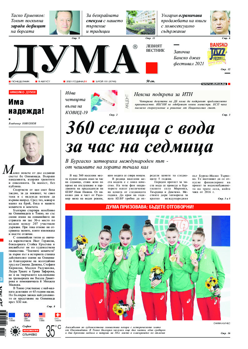 Малко повече от две седмици светът бе Олимпиада. Въпреки пандемията, въпреки тревогите и опасенията. За жалост, без публика. Спортисти от цял свят бяха заедно, за да покажат, че само така и с надежда можем да вървим напред. Сред тях, макар и малко на брой, бяха и нашите момичета и момчета. Българи...