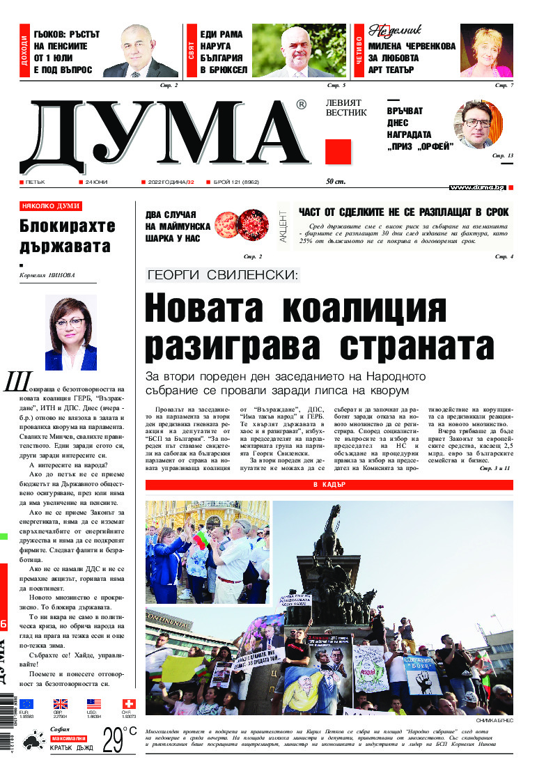 Корнелия НИНОВА Шокираща е безотговорността на новата коалиция ГЕРБ, "Възраждане", ИТН и ДПС. Днес (вчера - б.р.) отново не влязоха в залата и провалиха кворума на парламента. Свалихте Минчев, свалихте правителството. Едни заради егото си, други заради интересите си. А интересите на народа? Ако д...