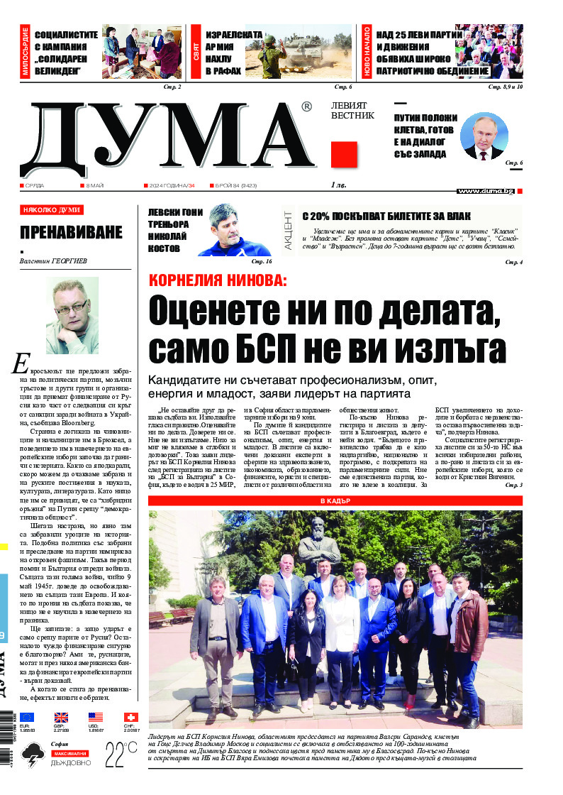 На този светъл празник на труда ние, представители на леви, патриотични, центристки и екологични партии, организации, движения и граждански сдружения, изразяваме нашата признателност към всички, които в продължение на много десетилетия бяха начело на борбите за правото на труд, достойно заплащане, с...