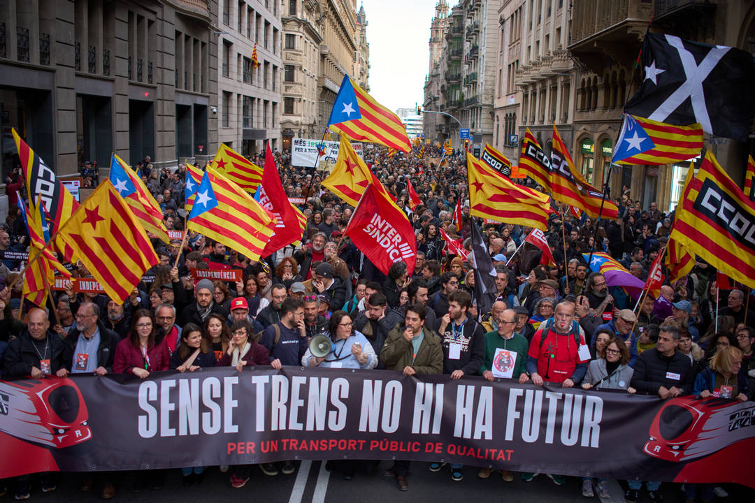 В Барселона се проведе многохиляден протест срещу зачестилите проблеми с жп транспорта. "Без влакове няма бъдеще", категорични бяха участниците в демонстрацията