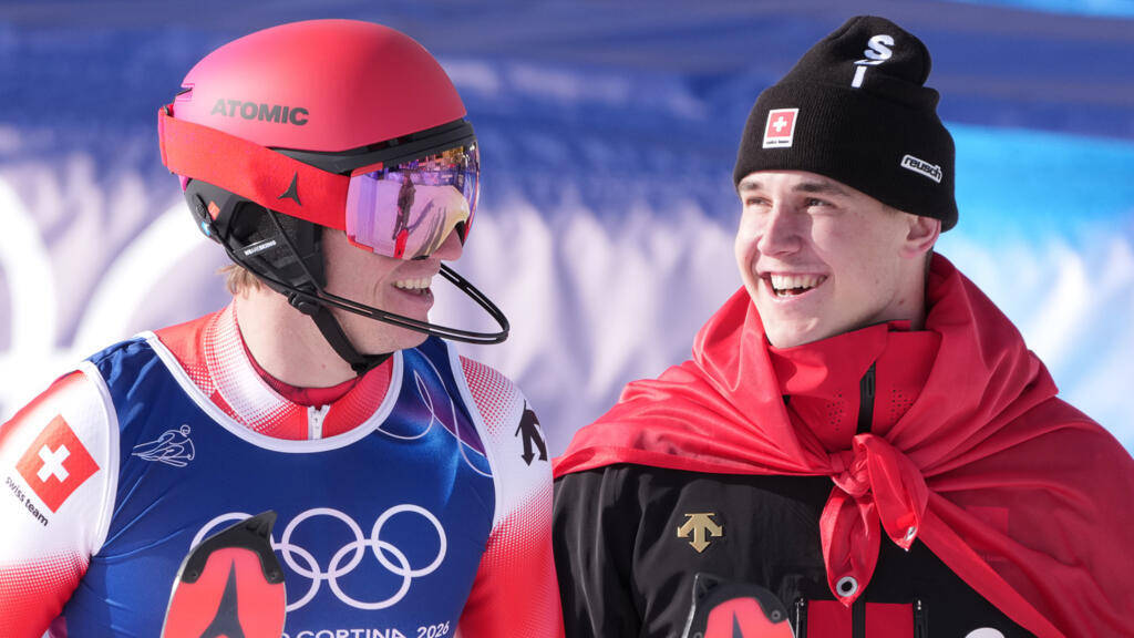 Франьо фон Алмен (вдясно) и Танги Неф донесоха трета титла за Швейцария в отборната алпийска комбинация с време 2:44,04 мин. Алмен стана първият двоен шампион на Игрите