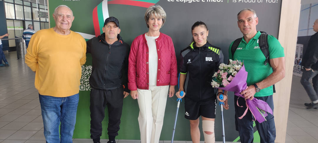 Валентина Георгиева беше посрещната от голяма делегация на Летище "Васил Левски". Водещата ни състезателка по спортна гимнастика получи контузия в лявото коляно на Световното в Джакарта. Тя призна, че травмата е по-тежка от предишната, заради която 20 месеца не участва в състезания