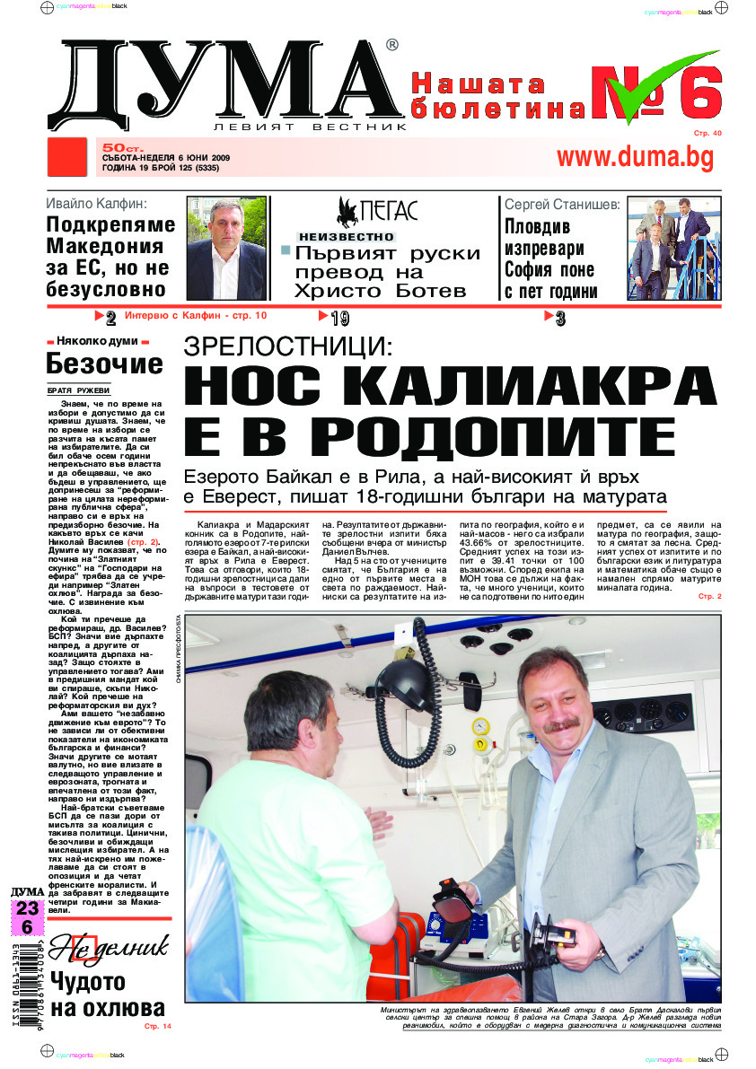 АБОНАМЕНТ за вестник „ДУМА“ за 2026 година. Можете да се абонирате в: „Български пощи“ АД до 15 декември 2025 г., „Доби прес“ ЕООД до 28 декември 2025 г., в редакцията на вестника до 20 декември 2025 г. Каталожен номер 6. Цени: 12 месеца - 149 € / 291,42 лв., 6 месеца - 75 € / 146,69 лв., 3 месеца - 40 € / 78,23 лв., 1 месец - 14 € / 27,38 лв. За повече информация тел. 02 9705 203 и 02 9705 216 отдел „Разпространение” на в-к ДУМА на ул. „Позитано” 20 А. E-mail: abonament@duma.bg АБОНАМЕНТ за вестник „ДУМА“ за 2026 година. Можете да се абонирате в: „Български пощи“ АД до 15 декември 2025 г., „Доби прес“ ЕООД до 28 декември 2025 г., в редакцията на вестника до 20 декември 2025 г. Каталожен номер 6. Цени: 12 месеца - 149 € / 291,42 лв., 6 месеца - 75 € / 146,69 лв., 3 месеца - 40 € / 78,23 лв., 1 месец - 14 € / 27,38 лв. За повече информация тел. 02 9705 203 и 02 9705 216 отдел „Разпространение” на в-к ДУМА на ул. „Позитано” 20 А. E-mail: abonament@duma.bg
