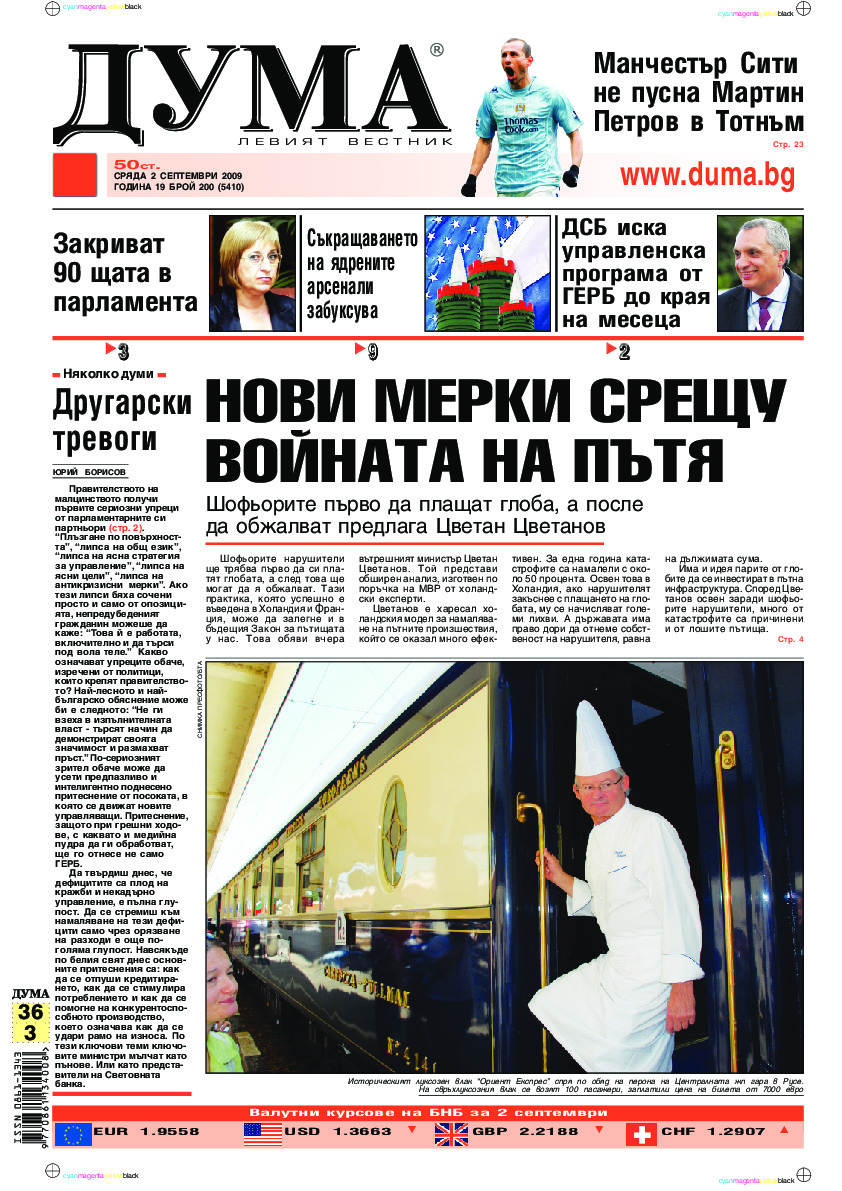 АБОНАМЕНТ за вестник „ДУМА“ за 2026 година. Можете да се абонирате в: „Български пощи“ АД до 15 декември 2025 г., „Доби прес“ ЕООД до 28 декември 2025 г., в редакцията на вестника до 20 декември 2025 г. Каталожен номер 6. Цени: 12 месеца - 149 € / 291,42 лв., 6 месеца - 75 € / 146,69 лв., 3 месеца - 40 € / 78,23 лв., 1 месец - 14 € / 27,38 лв. За повече информация тел. 02 9705 203 и 02 9705 216 отдел „Разпространение” на в-к ДУМА на ул. „Позитано” 20 А. E-mail: abonament@duma.bg АБОНАМЕНТ за вестник „ДУМА“ за 2026 година. Можете да се абонирате в: „Български пощи“ АД до 15 декември 2025 г., „Доби прес“ ЕООД до 28 декември 2025 г., в редакцията на вестника до 20 декември 2025 г. Каталожен номер 6. Цени: 12 месеца - 149 € / 291,42 лв., 6 месеца - 75 € / 146,69 лв., 3 месеца - 40 € / 78,23 лв., 1 месец - 14 € / 27,38 лв. За повече информация тел. 02 9705 203 и 02 9705 216 отдел „Разпространение” на в-к ДУМА на ул. „Позитано” 20 А. E-mail: abonament@duma.bg