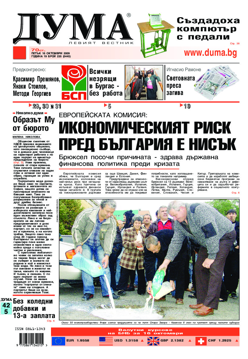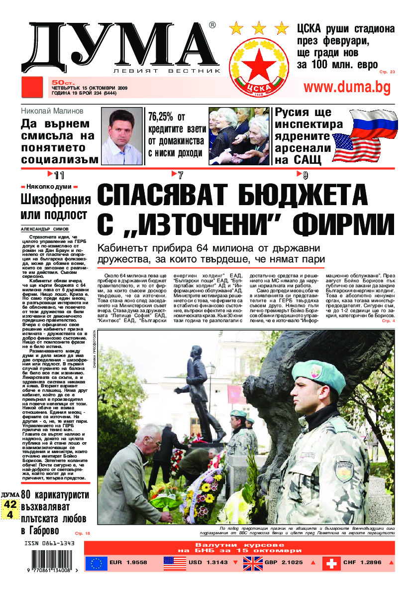АБОНАМЕНТ за вестник „ДУМА“ за 2026 година. Можете да се абонирате в: „Български пощи“ АД до 15 декември 2025 г., „Доби прес“ ЕООД до 28 декември 2025 г., в редакцията на вестника до 20 декември 2025 г. Каталожен номер 6. Цени: 12 месеца - 149 € / 291,42 лв., 6 месеца - 75 € / 146,69 лв., 3 месеца - 40 € / 78,23 лв., 1 месец - 14 € / 27,38 лв. За повече информация тел. 02 9705 203 и 02 9705 216 отдел „Разпространение” на в-к ДУМА на ул. „Позитано” 20 А. E-mail: abonament@duma.bg АБОНАМЕНТ за вестник „ДУМА“ за 2026 година. Можете да се абонирате в: „Български пощи“ АД до 15 декември 2025 г., „Доби прес“ ЕООД до 28 декември 2025 г., в редакцията на вестника до 20 декември 2025 г. Каталожен номер 6. Цени: 12 месеца - 149 € / 291,42 лв., 6 месеца - 75 € / 146,69 лв., 3 месеца - 40 € / 78,23 лв., 1 месец - 14 € / 27,38 лв. За повече информация тел. 02 9705 203 и 02 9705 216 отдел „Разпространение” на в-к ДУМА на ул. „Позитано” 20 А. E-mail: abonament@duma.bg