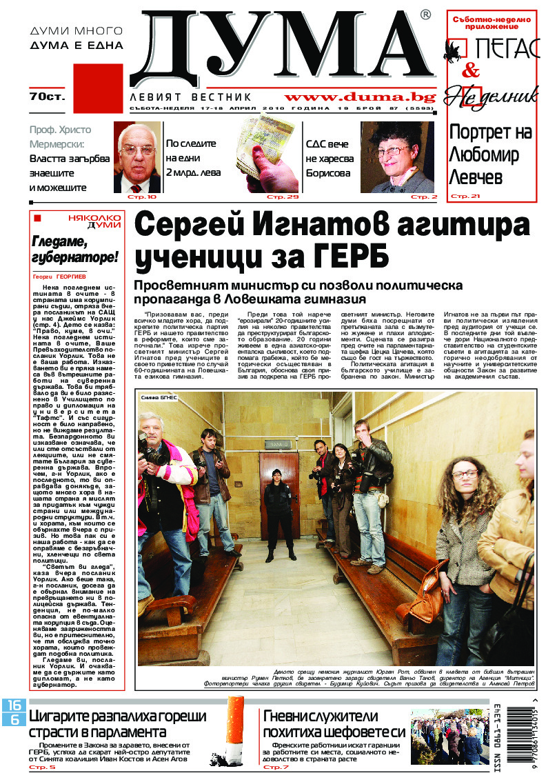 АБОНАМЕНТ за вестник „ДУМА“ за 2026 година. Можете да се абонирате в: „Български пощи“ АД до 15 декември 2025 г., „Доби прес“ ЕООД до 28 декември 2025 г., в редакцията на вестника до 20 декември 2025 г. Каталожен номер 6. Цени: 12 месеца - 149 € / 291,42 лв., 6 месеца - 75 € / 146,69 лв., 3 месеца - 40 € / 78,23 лв., 1 месец - 14 € / 27,38 лв. За повече информация тел. 02 9705 203 и 02 9705 216 отдел „Разпространение” на в-к ДУМА на ул. „Позитано” 20 А. E-mail: abonament@duma.bg АБОНАМЕНТ за вестник „ДУМА“ за 2026 година. Можете да се абонирате в: „Български пощи“ АД до 15 декември 2025 г., „Доби прес“ ЕООД до 28 декември 2025 г., в редакцията на вестника до 20 декември 2025 г. Каталожен номер 6. Цени: 12 месеца - 149 € / 291,42 лв., 6 месеца - 75 € / 146,69 лв., 3 месеца - 40 € / 78,23 лв., 1 месец - 14 € / 27,38 лв. За повече информация тел. 02 9705 203 и 02 9705 216 отдел „Разпространение” на в-к ДУМА на ул. „Позитано” 20 А. E-mail: abonament@duma.bg