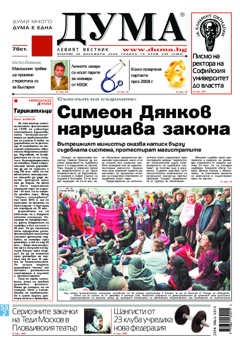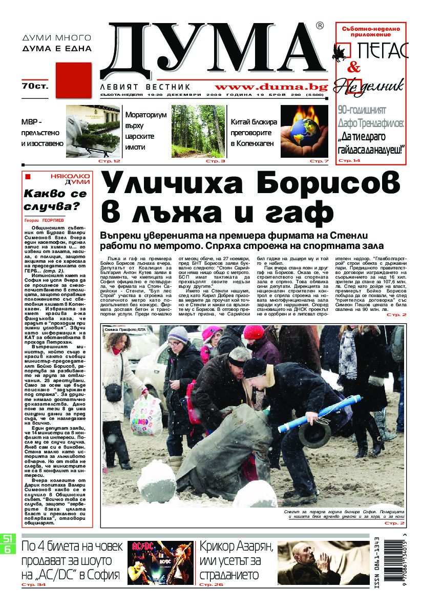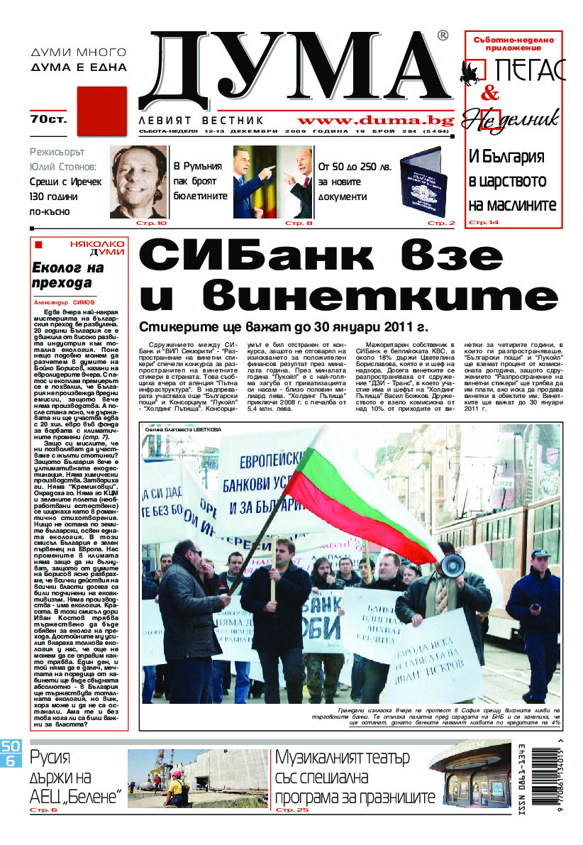 АБОНАМЕНТ за вестник „ДУМА“ за 2026 година. Можете да се абонирате в: „Български пощи“ АД до 15 декември 2025 г., „Доби прес“ ЕООД до 28 декември 2025 г., в редакцията на вестника до 20 декември 2025 г. Каталожен номер 6. Цени: 12 месеца - 149 € / 291,42 лв., 6 месеца - 75 € / 146,69 лв., 3 месеца - 40 € / 78,23 лв., 1 месец - 14 € / 27,38 лв. За повече информация тел. 02 9705 203 и 02 9705 216 отдел „Разпространение” на в-к ДУМА на ул. „Позитано” 20 А. E-mail: abonament@duma.bg АБОНАМЕНТ за вестник „ДУМА“ за 2026 година. Можете да се абонирате в: „Български пощи“ АД до 15 декември 2025 г., „Доби прес“ ЕООД до 28 декември 2025 г., в редакцията на вестника до 20 декември 2025 г. Каталожен номер 6. Цени: 12 месеца - 149 € / 291,42 лв., 6 месеца - 75 € / 146,69 лв., 3 месеца - 40 € / 78,23 лв., 1 месец - 14 € / 27,38 лв. За повече информация тел. 02 9705 203 и 02 9705 216 отдел „Разпространение” на в-к ДУМА на ул. „Позитано” 20 А. E-mail: abonament@duma.bg