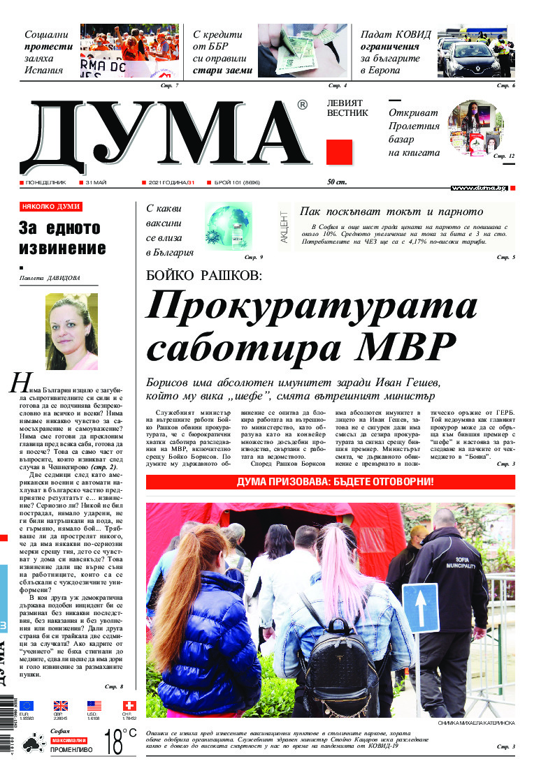 АБОНАМЕНТ за вестник „ДУМА“ за 2026 година. Можете да се абонирате в: „Български пощи“ АД до 15 декември 2025 г., „Доби прес“ ЕООД до 28 декември 2025 г., в редакцията на вестника до 20 декември 2025 г. Каталожен номер 6. Цени: 12 месеца - 149 € / 291,42 лв., 6 месеца - 75 € / 146,69 лв., 3 месеца - 40 € / 78,23 лв., 1 месец - 14 € / 27,38 лв. За повече информация тел. 02 9705 203 и 02 9705 216 отдел „Разпространение” на в-к ДУМА на ул. „Позитано” 20 А. E-mail: abonament@duma.bg АБОНАМЕНТ за вестник „ДУМА“ за 2026 година. Можете да се абонирате в: „Български пощи“ АД до 15 декември 2025 г., „Доби прес“ ЕООД до 28 декември 2025 г., в редакцията на вестника до 20 декември 2025 г. Каталожен номер 6. Цени: 12 месеца - 149 € / 291,42 лв., 6 месеца - 75 € / 146,69 лв., 3 месеца - 40 € / 78,23 лв., 1 месец - 14 € / 27,38 лв. За повече информация тел. 02 9705 203 и 02 9705 216 отдел „Разпространение” на в-к ДУМА на ул. „Позитано” 20 А. E-mail: abonament@duma.bg