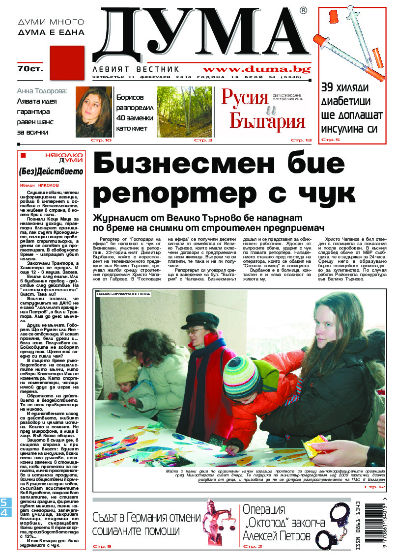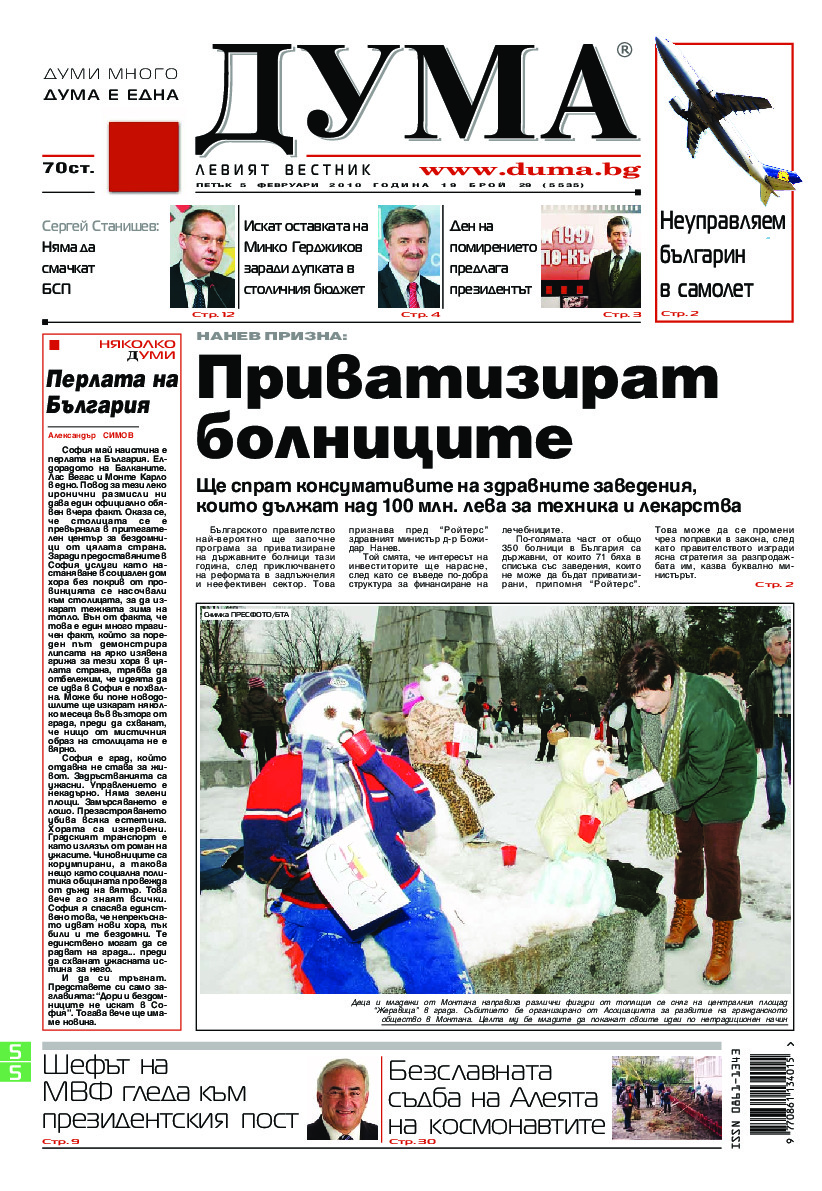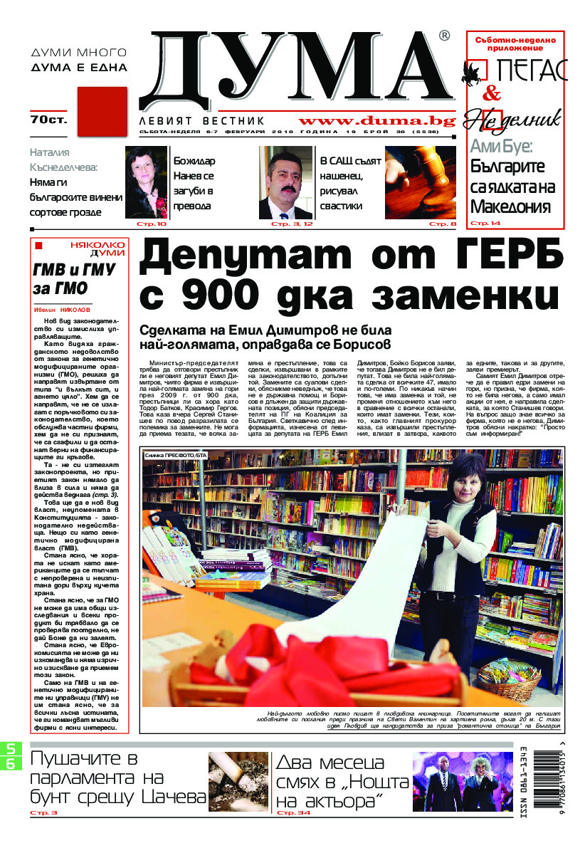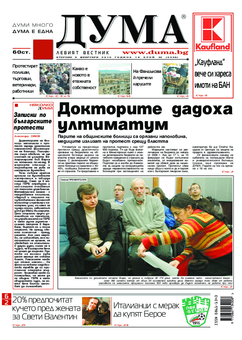 АБОНАМЕНТ за вестник „ДУМА“ за 2026 година. Можете да се абонирате в: „Български пощи“ АД до 15 декември 2025 г., „Доби прес“ ЕООД до 28 декември 2025 г., в редакцията на вестника до 20 декември 2025 г. Каталожен номер 6. Цени: 12 месеца - 149 € / 291,42 лв., 6 месеца - 75 € / 146,69 лв., 3 месеца - 40 € / 78,23 лв., 1 месец - 14 € / 27,38 лв. За повече информация тел. 02 9705 203 и 02 9705 216 отдел „Разпространение” на в-к ДУМА на ул. „Позитано” 20 А. E-mail: abonament@duma.bg АБОНАМЕНТ за вестник „ДУМА“ за 2026 година. Можете да се абонирате в: „Български пощи“ АД до 15 декември 2025 г., „Доби прес“ ЕООД до 28 декември 2025 г., в редакцията на вестника до 20 декември 2025 г. Каталожен номер 6. Цени: 12 месеца - 149 € / 291,42 лв., 6 месеца - 75 € / 146,69 лв., 3 месеца - 40 € / 78,23 лв., 1 месец - 14 € / 27,38 лв. За повече информация тел. 02 9705 203 и 02 9705 216 отдел „Разпространение” на в-к ДУМА на ул. „Позитано” 20 А. E-mail: abonament@duma.bg