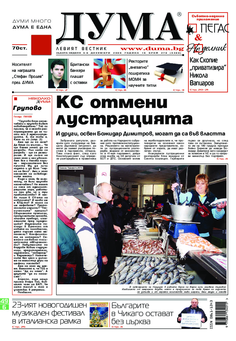 АБОНАМЕНТ за вестник „ДУМА“ за 2026 година. Можете да се абонирате в: „Български пощи“ АД до 15 декември 2025 г., „Доби прес“ ЕООД до 28 декември 2025 г., в редакцията на вестника до 20 декември 2025 г. Каталожен номер 6. Цени: 12 месеца - 149 € / 291,42 лв., 6 месеца - 75 € / 146,69 лв., 3 месеца - 40 € / 78,23 лв., 1 месец - 14 € / 27,38 лв. За повече информация тел. 02 9705 203 и 02 9705 216 отдел „Разпространение” на в-к ДУМА на ул. „Позитано” 20 А. E-mail: abonament@duma.bg АБОНАМЕНТ за вестник „ДУМА“ за 2026 година. Можете да се абонирате в: „Български пощи“ АД до 15 декември 2025 г., „Доби прес“ ЕООД до 28 декември 2025 г., в редакцията на вестника до 20 декември 2025 г. Каталожен номер 6. Цени: 12 месеца - 149 € / 291,42 лв., 6 месеца - 75 € / 146,69 лв., 3 месеца - 40 € / 78,23 лв., 1 месец - 14 € / 27,38 лв. За повече информация тел. 02 9705 203 и 02 9705 216 отдел „Разпространение” на в-к ДУМА на ул. „Позитано” 20 А. E-mail: abonament@duma.bg