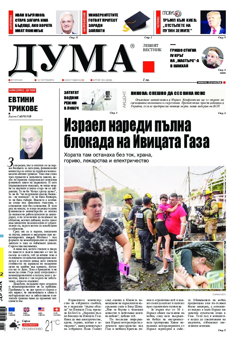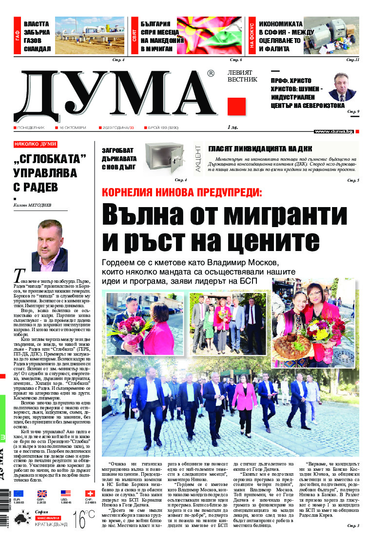 АБОНАМЕНТ за вестник „ДУМА“ за 2026 година. Можете да се абонирате в: „Български пощи“ АД до 15 декември 2025 г., „Доби прес“ ЕООД до 28 декември 2025 г., в редакцията на вестника до 20 декември 2025 г. Каталожен номер 6. Цени: 12 месеца - 149 € / 291,42 лв., 6 месеца - 75 € / 146,69 лв., 3 месеца - 40 € / 78,23 лв., 1 месец - 14 € / 27,38 лв. За повече информация тел. 02 9705 203 и 02 9705 216 отдел „Разпространение” на в-к ДУМА на ул. „Позитано” 20 А. E-mail: abonament@duma.bg АБОНАМЕНТ за вестник „ДУМА“ за 2026 година. Можете да се абонирате в: „Български пощи“ АД до 15 декември 2025 г., „Доби прес“ ЕООД до 28 декември 2025 г., в редакцията на вестника до 20 декември 2025 г. Каталожен номер 6. Цени: 12 месеца - 149 € / 291,42 лв., 6 месеца - 75 € / 146,69 лв., 3 месеца - 40 € / 78,23 лв., 1 месец - 14 € / 27,38 лв. За повече информация тел. 02 9705 203 и 02 9705 216 отдел „Разпространение” на в-к ДУМА на ул. „Позитано” 20 А. E-mail: abonament@duma.bg