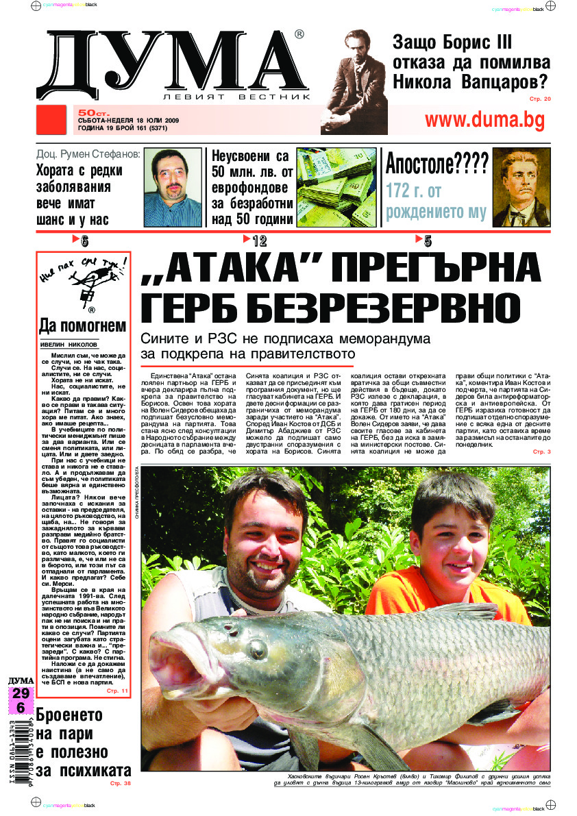 АБОНАМЕНТ за вестник „ДУМА“ за 2026 година. Можете да се абонирате в: „Български пощи“ АД до 15 декември 2025 г., „Доби прес“ ЕООД до 28 декември 2025 г., в редакцията на вестника до 20 декември 2025 г. Каталожен номер 6. Цени: 12 месеца - 149 € / 291,42 лв., 6 месеца - 75 € / 146,69 лв., 3 месеца - 40 € / 78,23 лв., 1 месец - 14 € / 27,38 лв. За повече информация тел. 02 9705 203 и 02 9705 216 отдел „Разпространение” на в-к ДУМА на ул. „Позитано” 20 А. E-mail: abonament@duma.bg АБОНАМЕНТ за вестник „ДУМА“ за 2026 година. Можете да се абонирате в: „Български пощи“ АД до 15 декември 2025 г., „Доби прес“ ЕООД до 28 декември 2025 г., в редакцията на вестника до 20 декември 2025 г. Каталожен номер 6. Цени: 12 месеца - 149 € / 291,42 лв., 6 месеца - 75 € / 146,69 лв., 3 месеца - 40 € / 78,23 лв., 1 месец - 14 € / 27,38 лв. За повече информация тел. 02 9705 203 и 02 9705 216 отдел „Разпространение” на в-к ДУМА на ул. „Позитано” 20 А. E-mail: abonament@duma.bg
