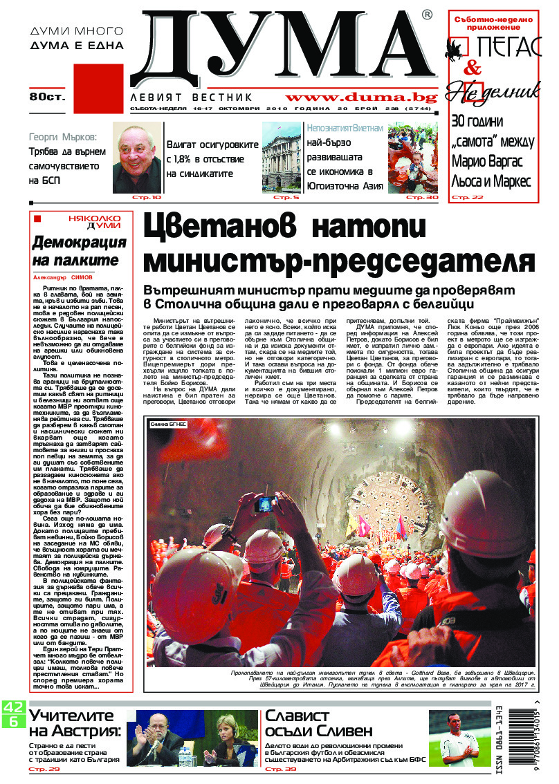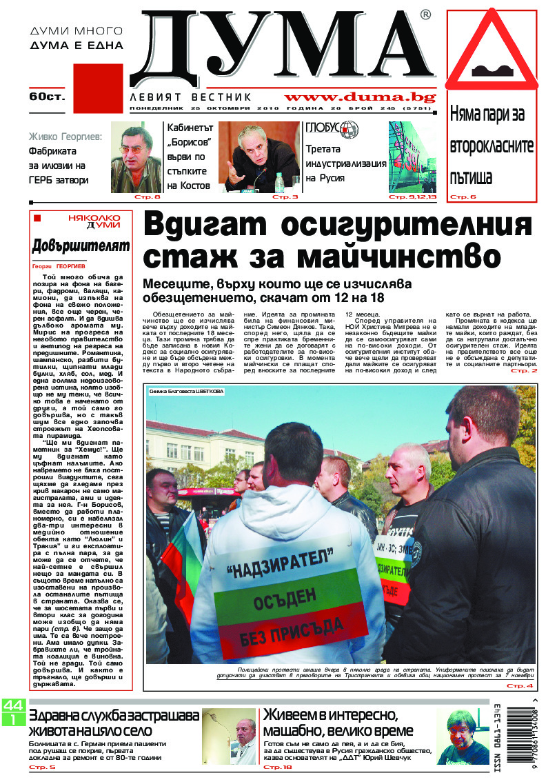 АБОНАМЕНТ за вестник „ДУМА“ за 2026 година. Можете да се абонирате в: „Български пощи“ АД до 15 декември 2025 г., „Доби прес“ ЕООД до 28 декември 2025 г., в редакцията на вестника до 20 декември 2025 г. Каталожен номер 6. Цени: 12 месеца - 149 € / 291,42 лв., 6 месеца - 75 € / 146,69 лв., 3 месеца - 40 € / 78,23 лв., 1 месец - 14 € / 27,38 лв. За повече информация тел. 02 9705 203 и 02 9705 216 отдел „Разпространение” на в-к ДУМА на ул. „Позитано” 20 А. E-mail: abonament@duma.bg АБОНАМЕНТ за вестник „ДУМА“ за 2026 година. Можете да се абонирате в: „Български пощи“ АД до 15 декември 2025 г., „Доби прес“ ЕООД до 28 декември 2025 г., в редакцията на вестника до 20 декември 2025 г. Каталожен номер 6. Цени: 12 месеца - 149 € / 291,42 лв., 6 месеца - 75 € / 146,69 лв., 3 месеца - 40 € / 78,23 лв., 1 месец - 14 € / 27,38 лв. За повече информация тел. 02 9705 203 и 02 9705 216 отдел „Разпространение” на в-к ДУМА на ул. „Позитано” 20 А. E-mail: abonament@duma.bg