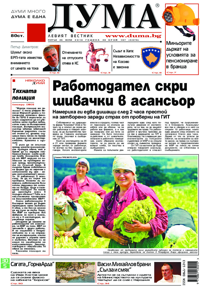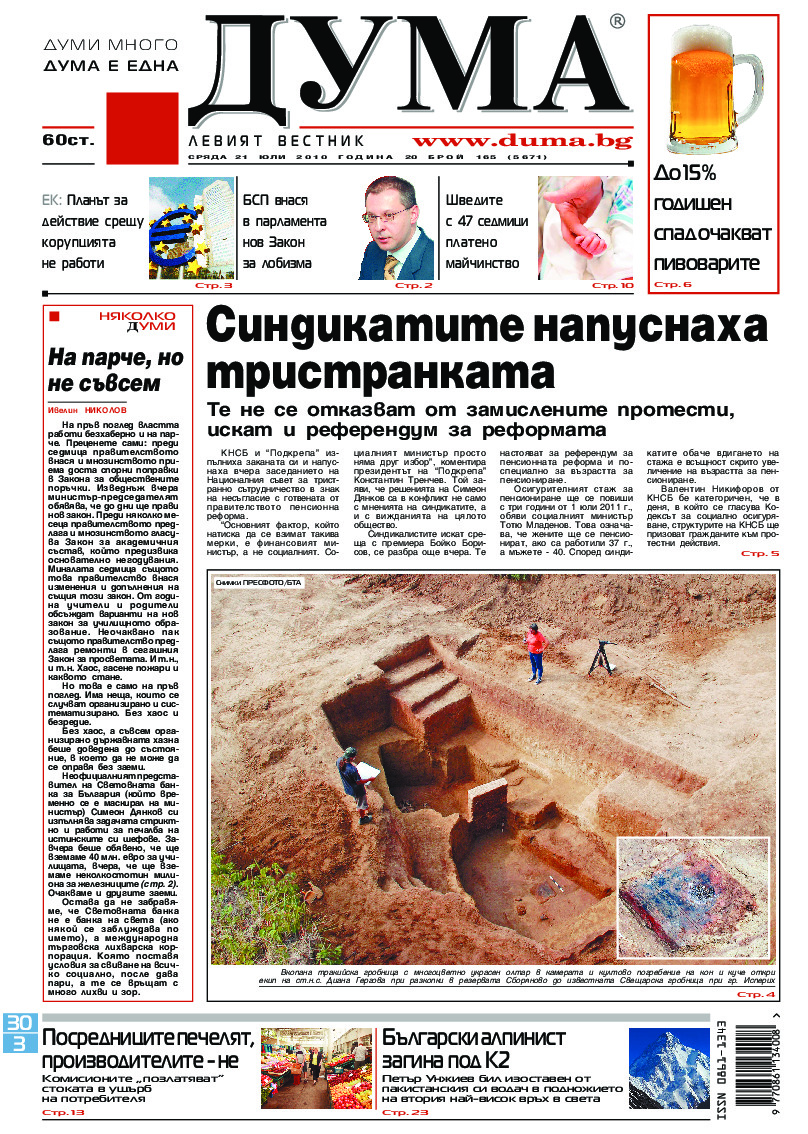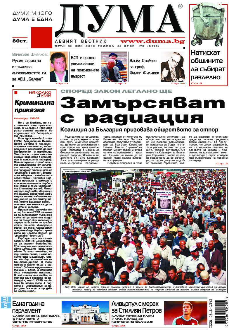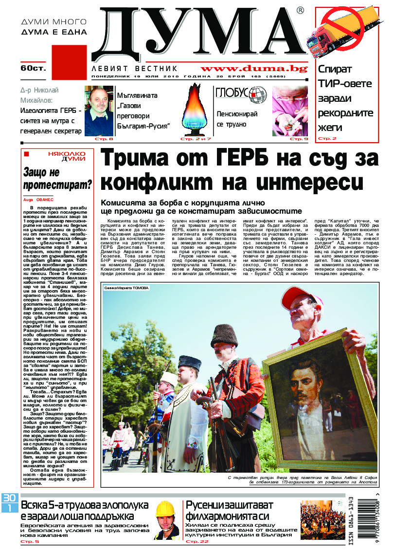 АБОНАМЕНТ за вестник „ДУМА“ за 2026 година. Можете да се абонирате в: „Български пощи“ АД до 15 декември 2025 г., „Доби прес“ ЕООД до 28 декември 2025 г., в редакцията на вестника до 20 декември 2025 г. Каталожен номер 6. Цени: 12 месеца - 149 € / 291,42 лв., 6 месеца - 75 € / 146,69 лв., 3 месеца - 40 € / 78,23 лв., 1 месец - 14 € / 27,38 лв. За повече информация тел. 02 9705 203 и 02 9705 216 отдел „Разпространение” на в-к ДУМА на ул. „Позитано” 20 А. E-mail: abonament@duma.bg АБОНАМЕНТ за вестник „ДУМА“ за 2026 година. Можете да се абонирате в: „Български пощи“ АД до 15 декември 2025 г., „Доби прес“ ЕООД до 28 декември 2025 г., в редакцията на вестника до 20 декември 2025 г. Каталожен номер 6. Цени: 12 месеца - 149 € / 291,42 лв., 6 месеца - 75 € / 146,69 лв., 3 месеца - 40 € / 78,23 лв., 1 месец - 14 € / 27,38 лв. За повече информация тел. 02 9705 203 и 02 9705 216 отдел „Разпространение” на в-к ДУМА на ул. „Позитано” 20 А. E-mail: abonament@duma.bg