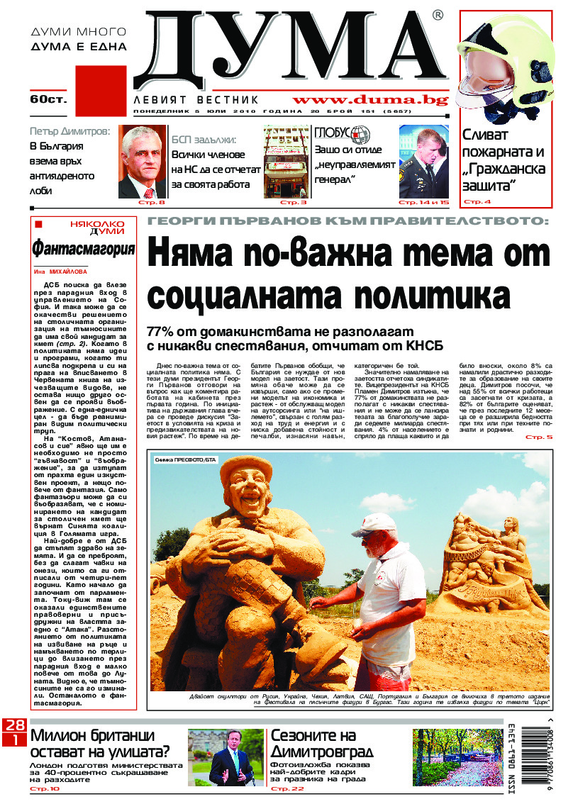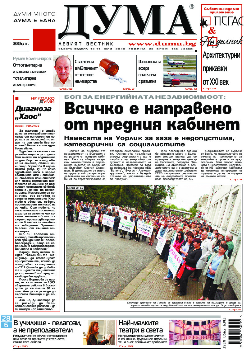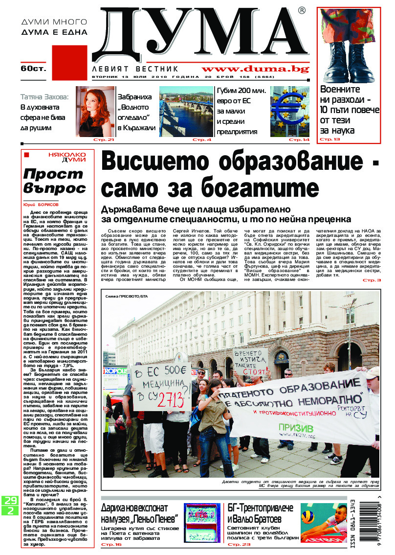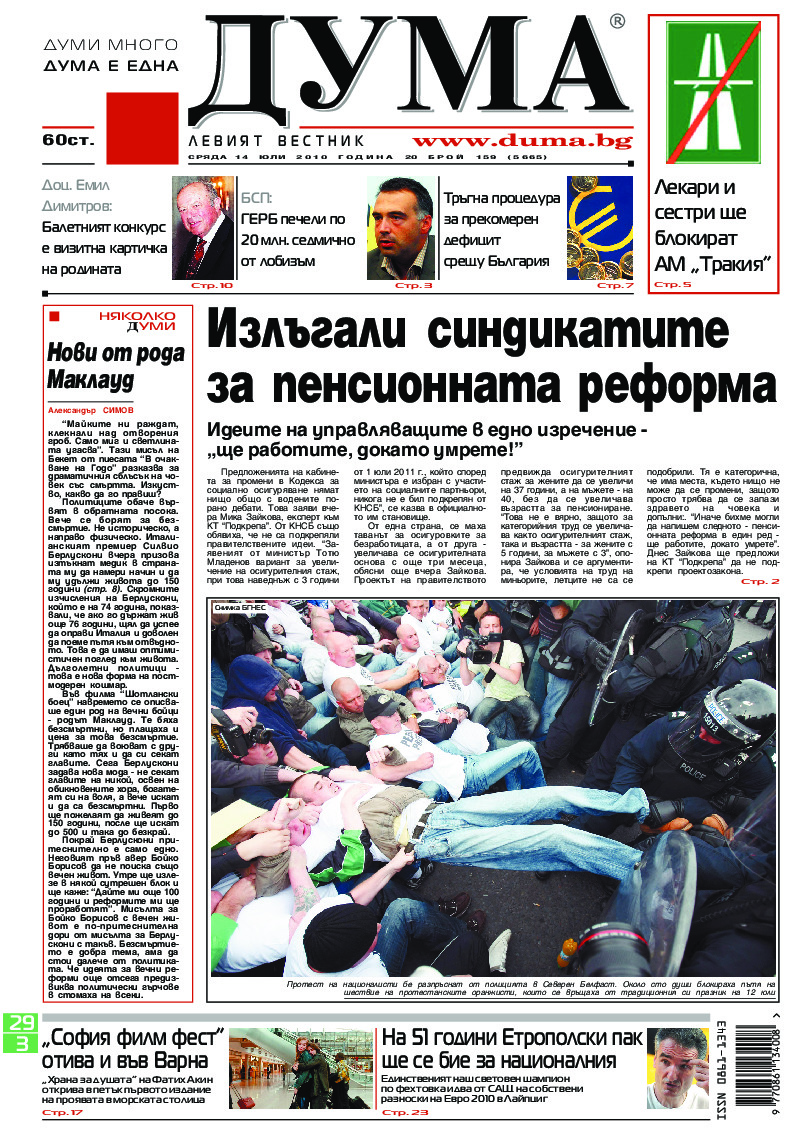 АБОНАМЕНТ за вестник „ДУМА“ за 2026 година. Можете да се абонирате в: „Български пощи“ АД до 15 декември 2025 г., „Доби прес“ ЕООД до 28 декември 2025 г., в редакцията на вестника до 20 декември 2025 г. Каталожен номер 6. Цени: 12 месеца - 149 € / 291,42 лв., 6 месеца - 75 € / 146,69 лв., 3 месеца - 40 € / 78,23 лв., 1 месец - 14 € / 27,38 лв. За повече информация тел. 02 9705 203 и 02 9705 216 отдел „Разпространение” на в-к ДУМА на ул. „Позитано” 20 А. E-mail: abonament@duma.bg АБОНАМЕНТ за вестник „ДУМА“ за 2026 година. Можете да се абонирате в: „Български пощи“ АД до 15 декември 2025 г., „Доби прес“ ЕООД до 28 декември 2025 г., в редакцията на вестника до 20 декември 2025 г. Каталожен номер 6. Цени: 12 месеца - 149 € / 291,42 лв., 6 месеца - 75 € / 146,69 лв., 3 месеца - 40 € / 78,23 лв., 1 месец - 14 € / 27,38 лв. За повече информация тел. 02 9705 203 и 02 9705 216 отдел „Разпространение” на в-к ДУМА на ул. „Позитано” 20 А. E-mail: abonament@duma.bg