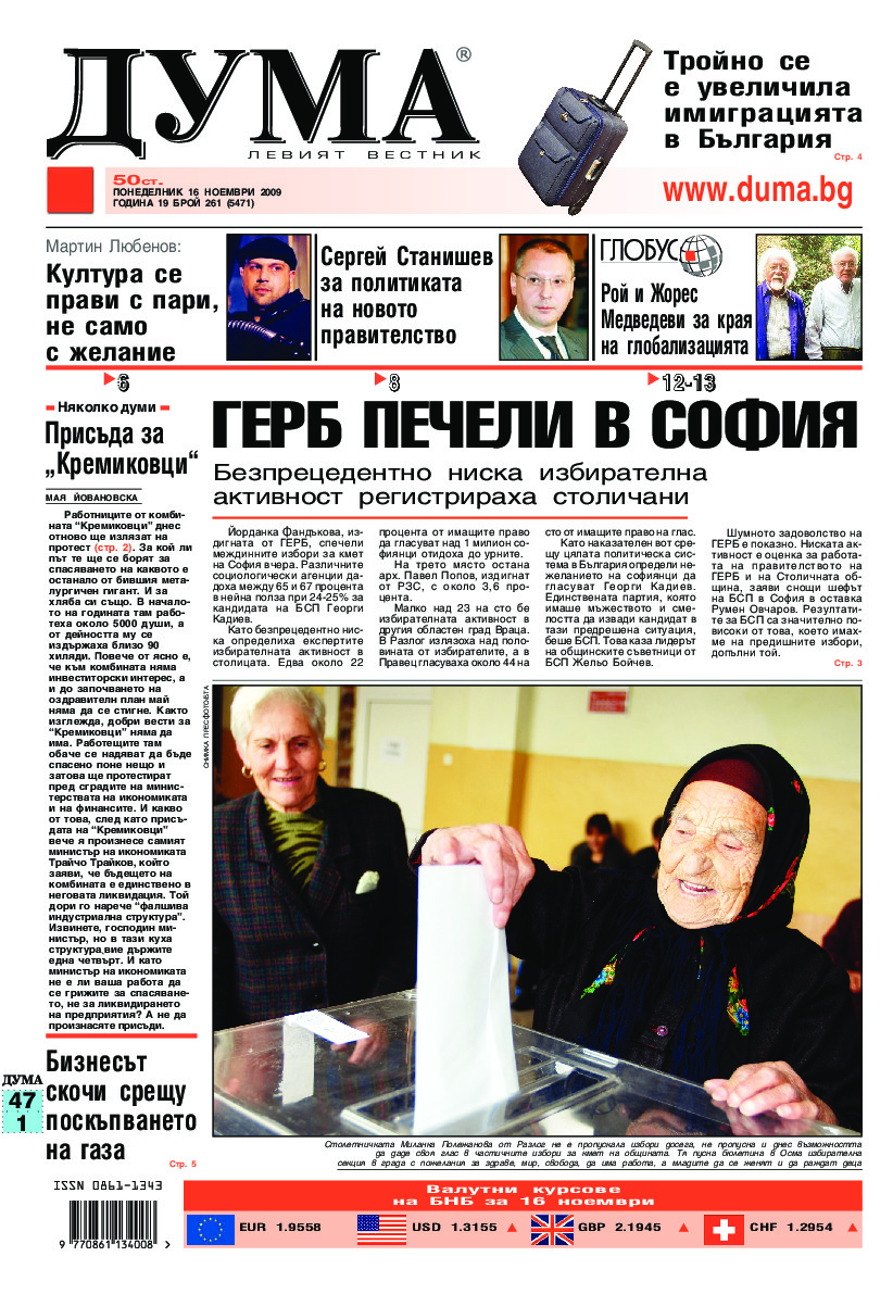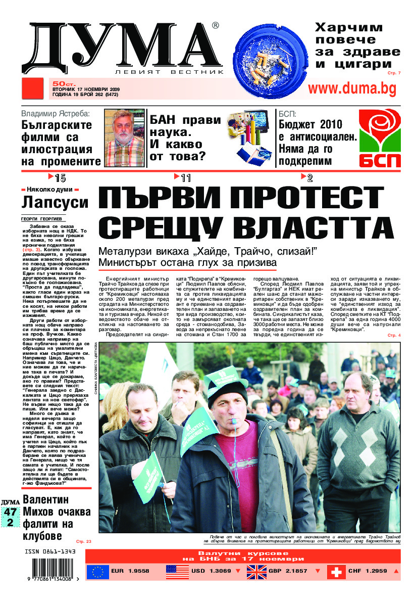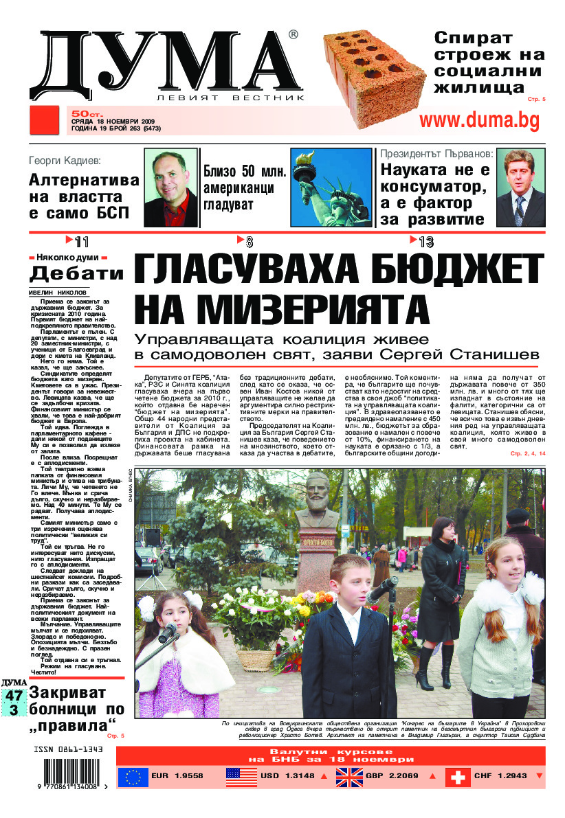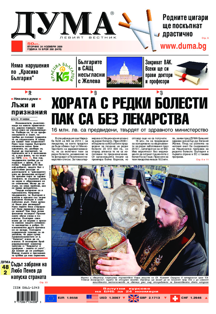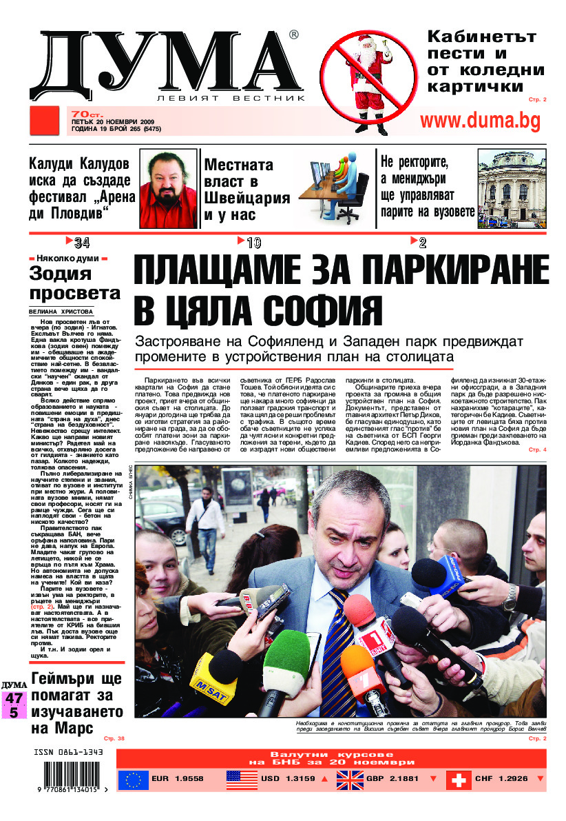 АБОНАМЕНТ за вестник „ДУМА“ за 2026 година. Можете да се абонирате в: „Български пощи“ АД до 15 декември 2025 г., „Доби прес“ ЕООД до 28 декември 2025 г., в редакцията на вестника до 20 декември 2025 г. Каталожен номер 6. Цени: 12 месеца - 149 € / 291,42 лв., 6 месеца - 75 € / 146,69 лв., 3 месеца - 40 € / 78,23 лв., 1 месец - 14 € / 27,38 лв. За повече информация тел. 02 9705 203 и 02 9705 216 отдел „Разпространение” на в-к ДУМА на ул. „Позитано” 20 А. E-mail: abonament@duma.bg АБОНАМЕНТ за вестник „ДУМА“ за 2026 година. Можете да се абонирате в: „Български пощи“ АД до 15 декември 2025 г., „Доби прес“ ЕООД до 28 декември 2025 г., в редакцията на вестника до 20 декември 2025 г. Каталожен номер 6. Цени: 12 месеца - 149 € / 291,42 лв., 6 месеца - 75 € / 146,69 лв., 3 месеца - 40 € / 78,23 лв., 1 месец - 14 € / 27,38 лв. За повече информация тел. 02 9705 203 и 02 9705 216 отдел „Разпространение” на в-к ДУМА на ул. „Позитано” 20 А. E-mail: abonament@duma.bg
