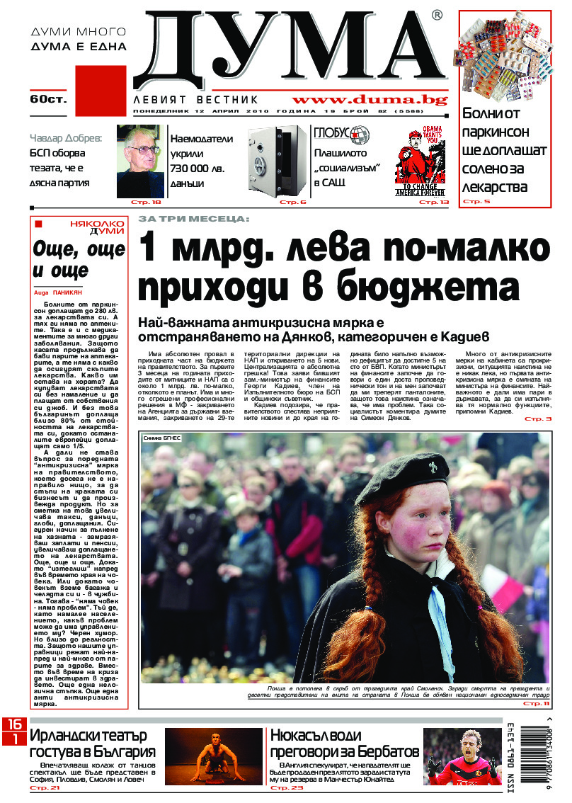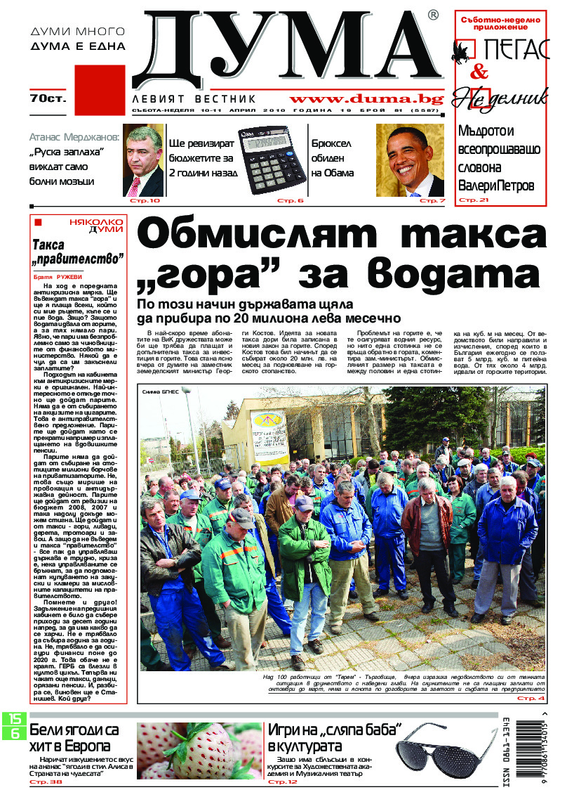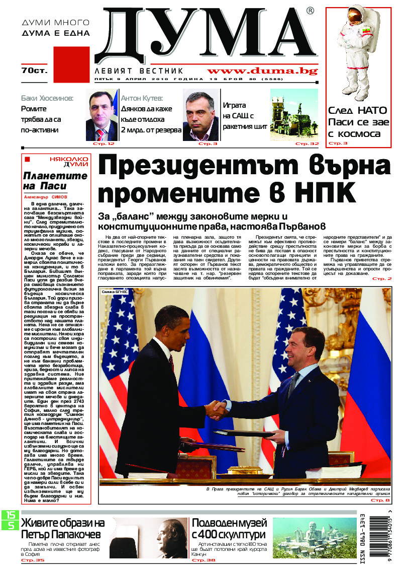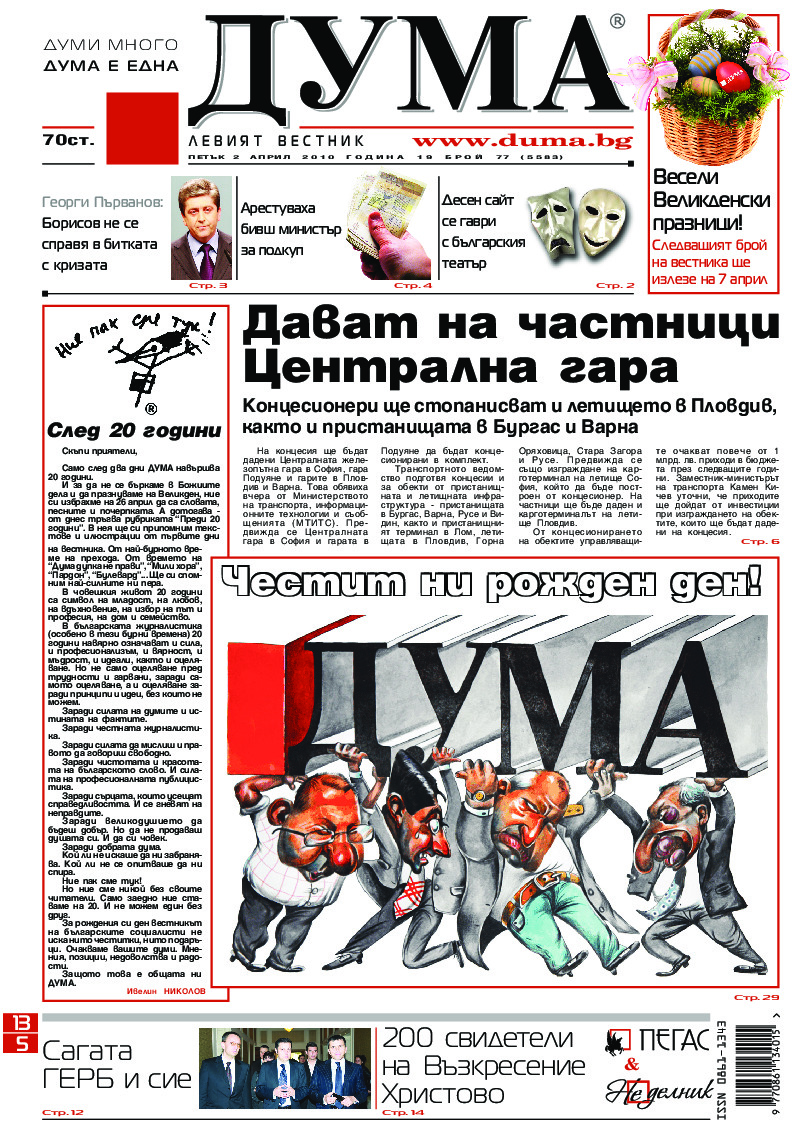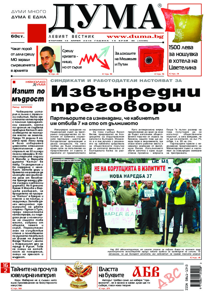 АБОНАМЕНТ за вестник „ДУМА“ за 2026 година. Можете да се абонирате в: „Български пощи“ АД до 15 декември 2025 г., „Доби прес“ ЕООД до 28 декември 2025 г., в редакцията на вестника до 20 декември 2025 г. Каталожен номер 6. Цени: 12 месеца - 149 € / 291,42 лв., 6 месеца - 75 € / 146,69 лв., 3 месеца - 40 € / 78,23 лв., 1 месец - 14 € / 27,38 лв. За повече информация тел. 02 9705 203 и 02 9705 216 отдел „Разпространение” на в-к ДУМА на ул. „Позитано” 20 А. E-mail: abonament@duma.bg АБОНАМЕНТ за вестник „ДУМА“ за 2026 година. Можете да се абонирате в: „Български пощи“ АД до 15 декември 2025 г., „Доби прес“ ЕООД до 28 декември 2025 г., в редакцията на вестника до 20 декември 2025 г. Каталожен номер 6. Цени: 12 месеца - 149 € / 291,42 лв., 6 месеца - 75 € / 146,69 лв., 3 месеца - 40 € / 78,23 лв., 1 месец - 14 € / 27,38 лв. За повече информация тел. 02 9705 203 и 02 9705 216 отдел „Разпространение” на в-к ДУМА на ул. „Позитано” 20 А. E-mail: abonament@duma.bg