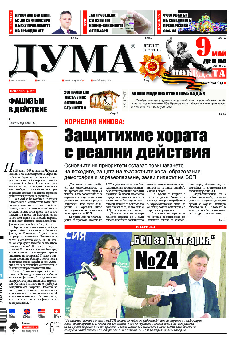 АБОНАМЕНТ за вестник „ДУМА“ за 2026 година. Можете да се абонирате в: „Български пощи“ АД до 15 декември 2025 г., „Доби прес“ ЕООД до 28 декември 2025 г., в редакцията на вестника до 20 декември 2025 г. Каталожен номер 6. Цени: 12 месеца - 149 € / 291,42 лв., 6 месеца - 75 € / 146,69 лв., 3 месеца - 40 € / 78,23 лв., 1 месец - 14 € / 27,38 лв. За повече информация тел. 02 9705 203 и 02 9705 216 отдел „Разпространение” на в-к ДУМА на ул. „Позитано” 20 А. E-mail: abonament@duma.bg АБОНАМЕНТ за вестник „ДУМА“ за 2026 година. Можете да се абонирате в: „Български пощи“ АД до 15 декември 2025 г., „Доби прес“ ЕООД до 28 декември 2025 г., в редакцията на вестника до 20 декември 2025 г. Каталожен номер 6. Цени: 12 месеца - 149 € / 291,42 лв., 6 месеца - 75 € / 146,69 лв., 3 месеца - 40 € / 78,23 лв., 1 месец - 14 € / 27,38 лв. За повече информация тел. 02 9705 203 и 02 9705 216 отдел „Разпространение” на в-к ДУМА на ул. „Позитано” 20 А. E-mail: abonament@duma.bg