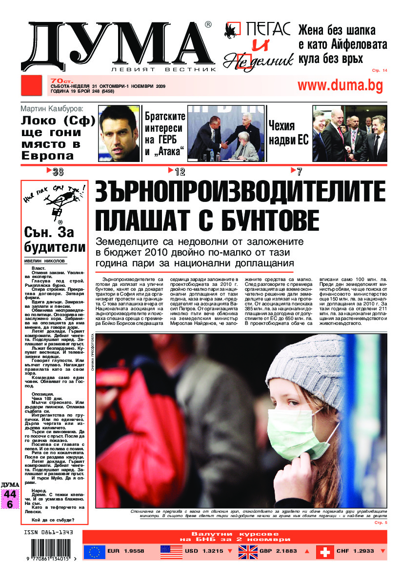 АБОНАМЕНТ за вестник „ДУМА“ за 2026 година. Можете да се абонирате в: „Български пощи“ АД до 15 декември 2025 г., „Доби прес“ ЕООД до 28 декември 2025 г., в редакцията на вестника до 20 декември 2025 г. Каталожен номер 6. Цени: 12 месеца - 149 € / 291,42 лв., 6 месеца - 75 € / 146,69 лв., 3 месеца - 40 € / 78,23 лв., 1 месец - 14 € / 27,38 лв. За повече информация тел. 02 9705 203 и 02 9705 216 отдел „Разпространение” на в-к ДУМА на ул. „Позитано” 20 А. E-mail: abonament@duma.bg АБОНАМЕНТ за вестник „ДУМА“ за 2026 година. Можете да се абонирате в: „Български пощи“ АД до 15 декември 2025 г., „Доби прес“ ЕООД до 28 декември 2025 г., в редакцията на вестника до 20 декември 2025 г. Каталожен номер 6. Цени: 12 месеца - 149 € / 291,42 лв., 6 месеца - 75 € / 146,69 лв., 3 месеца - 40 € / 78,23 лв., 1 месец - 14 € / 27,38 лв. За повече информация тел. 02 9705 203 и 02 9705 216 отдел „Разпространение” на в-к ДУМА на ул. „Позитано” 20 А. E-mail: abonament@duma.bg