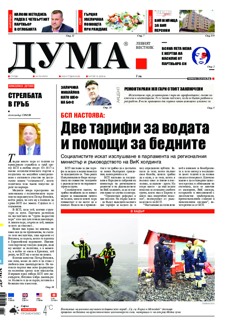 АБОНАМЕНТ за вестник „ДУМА“ за 2026 година. Можете да се абонирате в: „Български пощи“ АД до 15 декември 2025 г., „Доби прес“ ЕООД до 28 декември 2025 г., в редакцията на вестника до 20 декември 2025 г. Каталожен номер 6. Цени: 12 месеца - 149 € / 291,42 лв., 6 месеца - 75 € / 146,69 лв., 3 месеца - 40 € / 78,23 лв., 1 месец - 14 € / 27,38 лв. За повече информация тел. 02 9705 203 и 02 9705 216 отдел „Разпространение” на в-к ДУМА на ул. „Позитано” 20 А. E-mail: abonament@duma.bg АБОНАМЕНТ за вестник „ДУМА“ за 2026 година. Можете да се абонирате в: „Български пощи“ АД до 15 декември 2025 г., „Доби прес“ ЕООД до 28 декември 2025 г., в редакцията на вестника до 20 декември 2025 г. Каталожен номер 6. Цени: 12 месеца - 149 € / 291,42 лв., 6 месеца - 75 € / 146,69 лв., 3 месеца - 40 € / 78,23 лв., 1 месец - 14 € / 27,38 лв. За повече информация тел. 02 9705 203 и 02 9705 216 отдел „Разпространение” на в-к ДУМА на ул. „Позитано” 20 А. E-mail: abonament@duma.bg