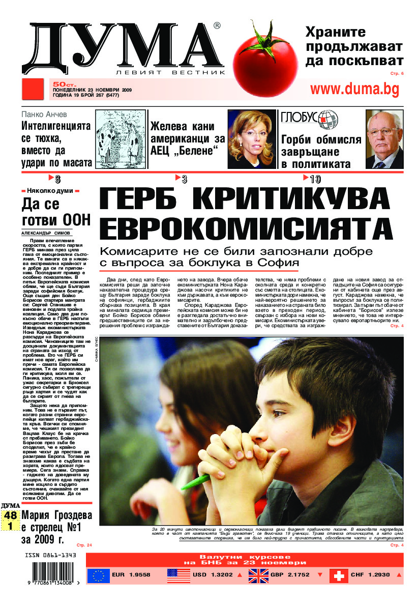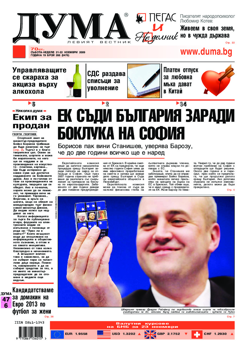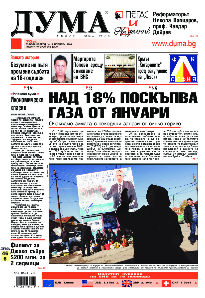 АБОНАМЕНТ за вестник „ДУМА“ за 2026 година. Можете да се абонирате в: „Български пощи“ АД до 15 декември 2025 г., „Доби прес“ ЕООД до 28 декември 2025 г., в редакцията на вестника до 20 декември 2025 г. Каталожен номер 6. Цени: 12 месеца - 149 € / 291,42 лв., 6 месеца - 75 € / 146,69 лв., 3 месеца - 40 € / 78,23 лв., 1 месец - 14 € / 27,38 лв. За повече информация тел. 02 9705 203 и 02 9705 216 отдел „Разпространение” на в-к ДУМА на ул. „Позитано” 20 А. E-mail: abonament@duma.bg АБОНАМЕНТ за вестник „ДУМА“ за 2026 година. Можете да се абонирате в: „Български пощи“ АД до 15 декември 2025 г., „Доби прес“ ЕООД до 28 декември 2025 г., в редакцията на вестника до 20 декември 2025 г. Каталожен номер 6. Цени: 12 месеца - 149 € / 291,42 лв., 6 месеца - 75 € / 146,69 лв., 3 месеца - 40 € / 78,23 лв., 1 месец - 14 € / 27,38 лв. За повече информация тел. 02 9705 203 и 02 9705 216 отдел „Разпространение” на в-к ДУМА на ул. „Позитано” 20 А. E-mail: abonament@duma.bg